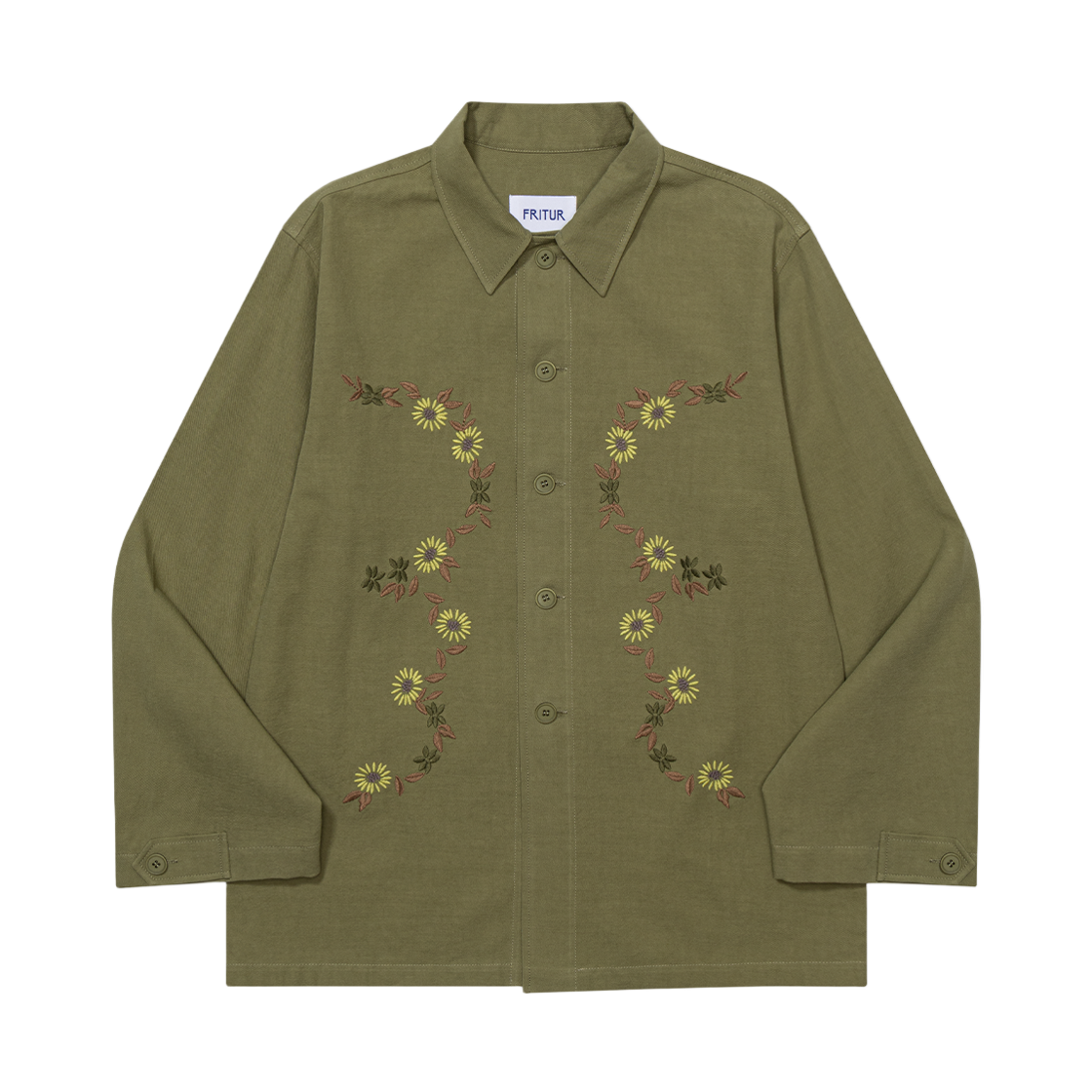 프리터 플라워 자르뎅 엠브로이더리 셔츠 카키