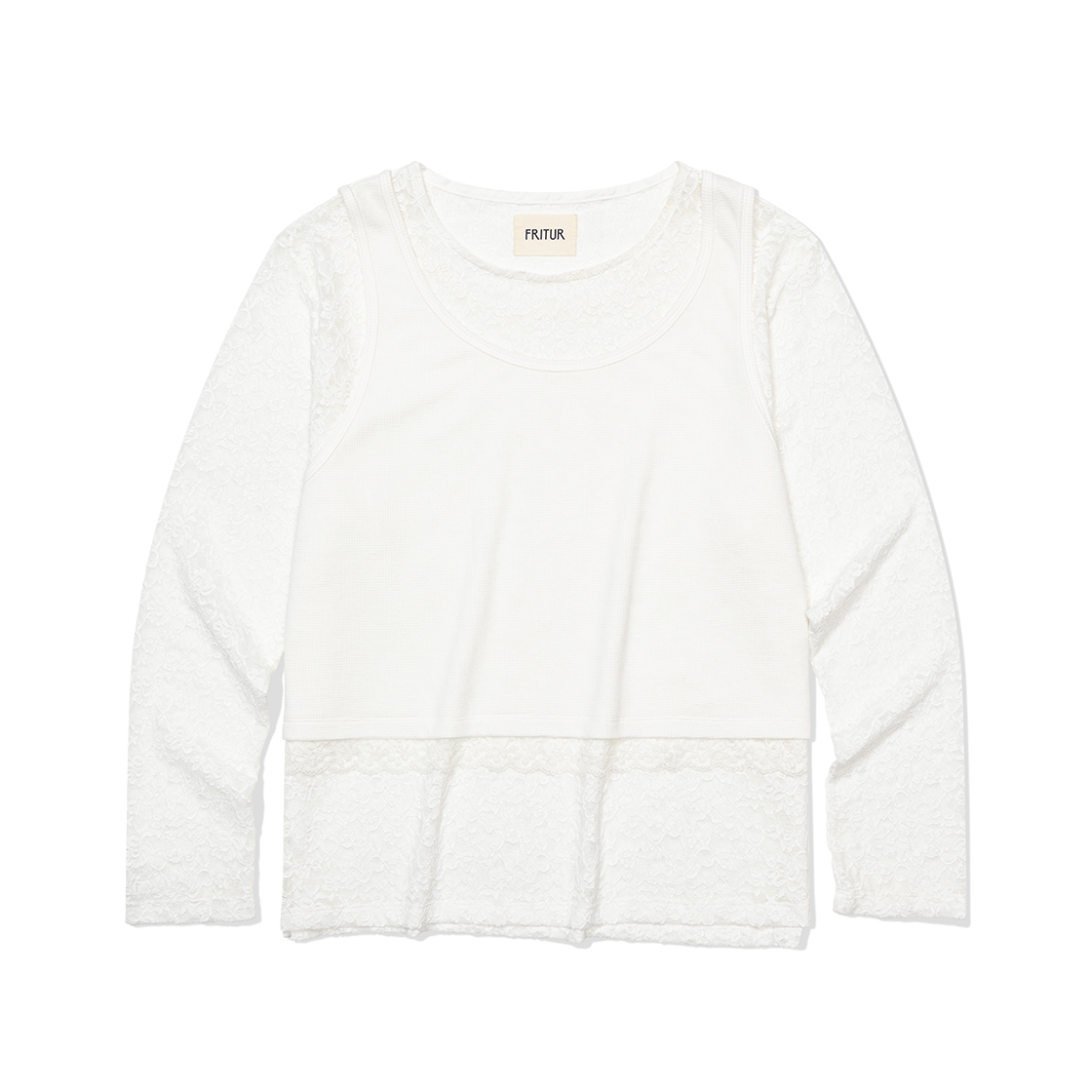 프리터 레이스 레이어드 롱 슬리브드 탑 아이보리