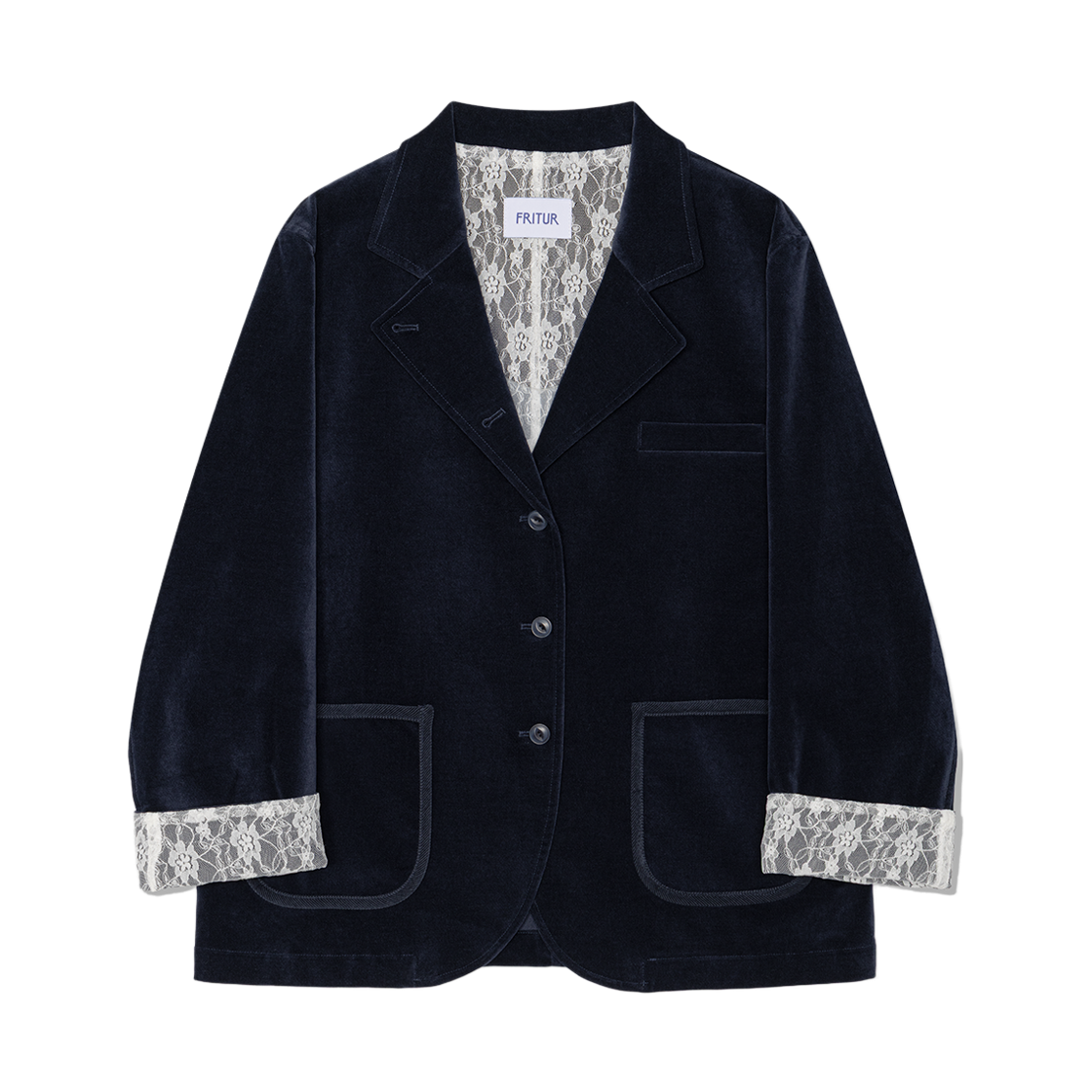 프리터 시그니처 패치워크 봄버 자켓 네이비