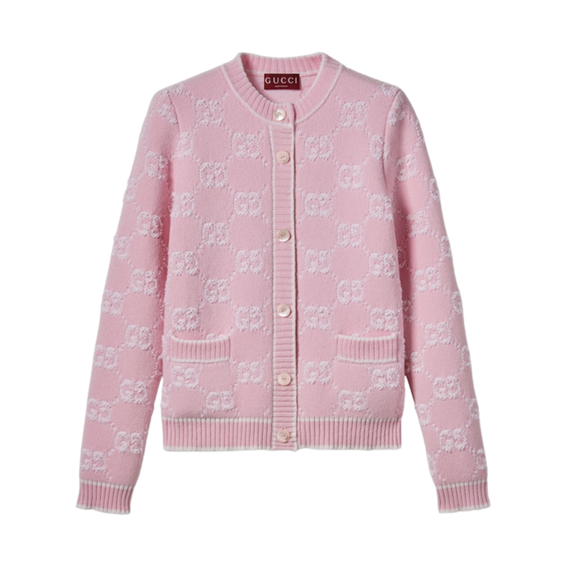 (W) 구찌 GG 울 부클레 자카드 가디건 라이트 핑크 화이트
