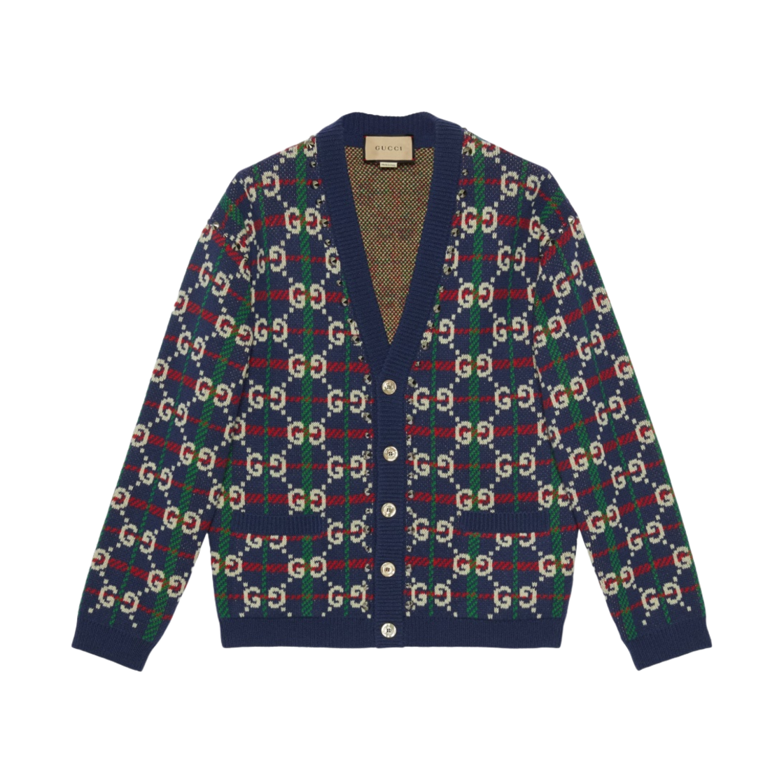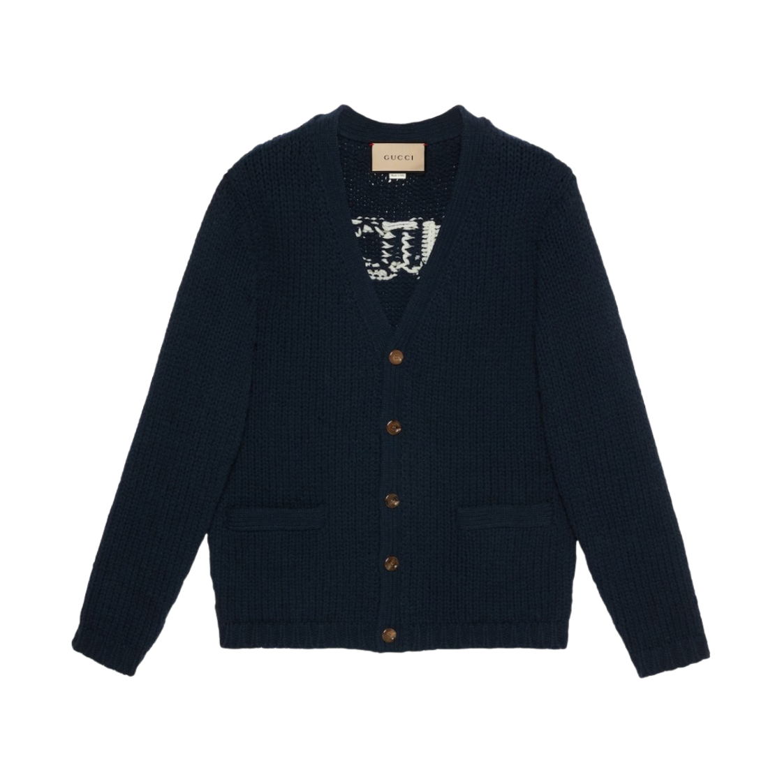 구찌 인타르시아 니트 울 가디건 다크 블루