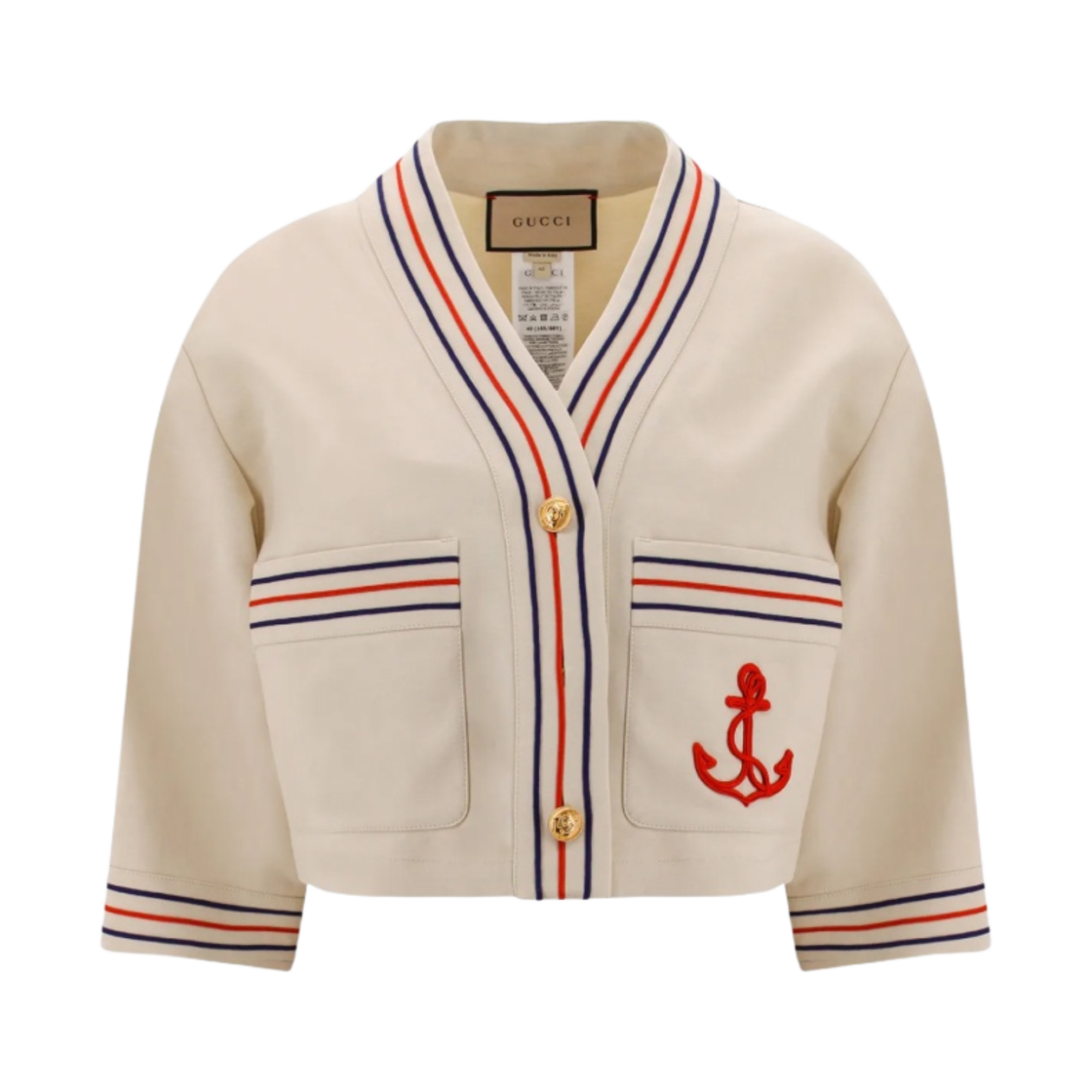 구찌 타이거 GG 자카드 울 가디건 아이보리