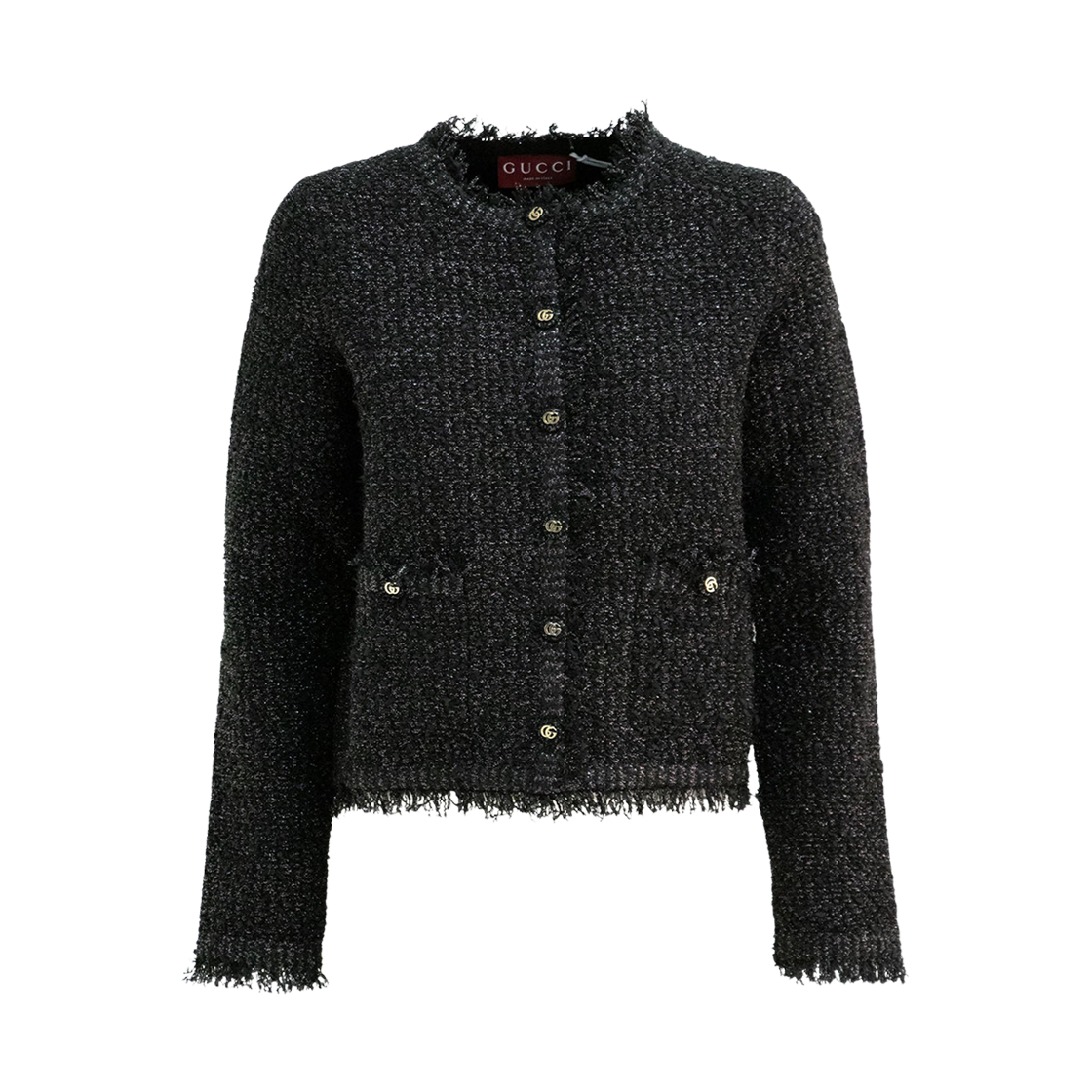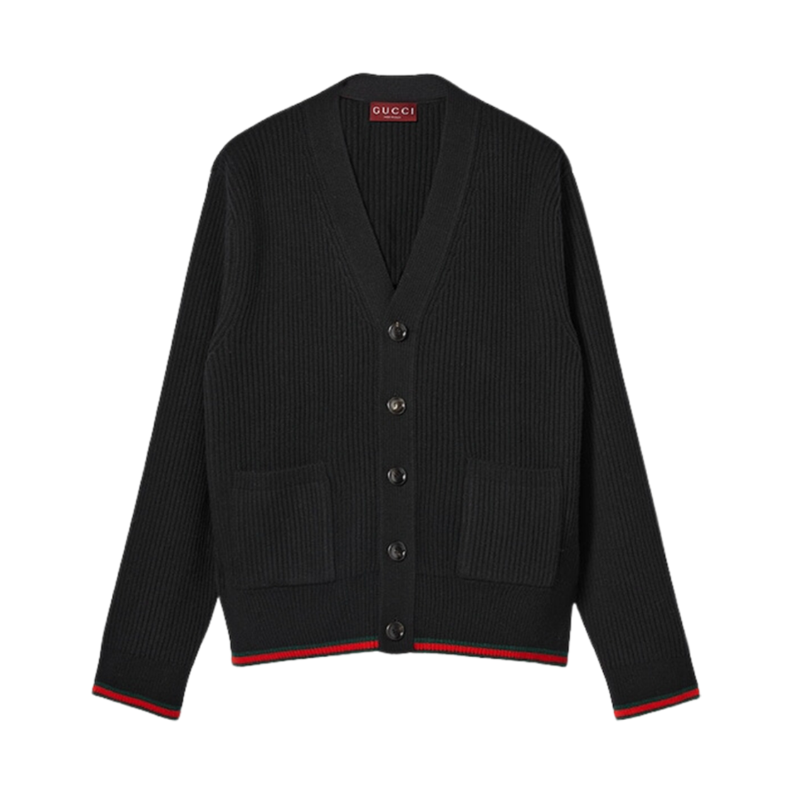 구찌 울 캐시미어 립 니트 가디건 블랙