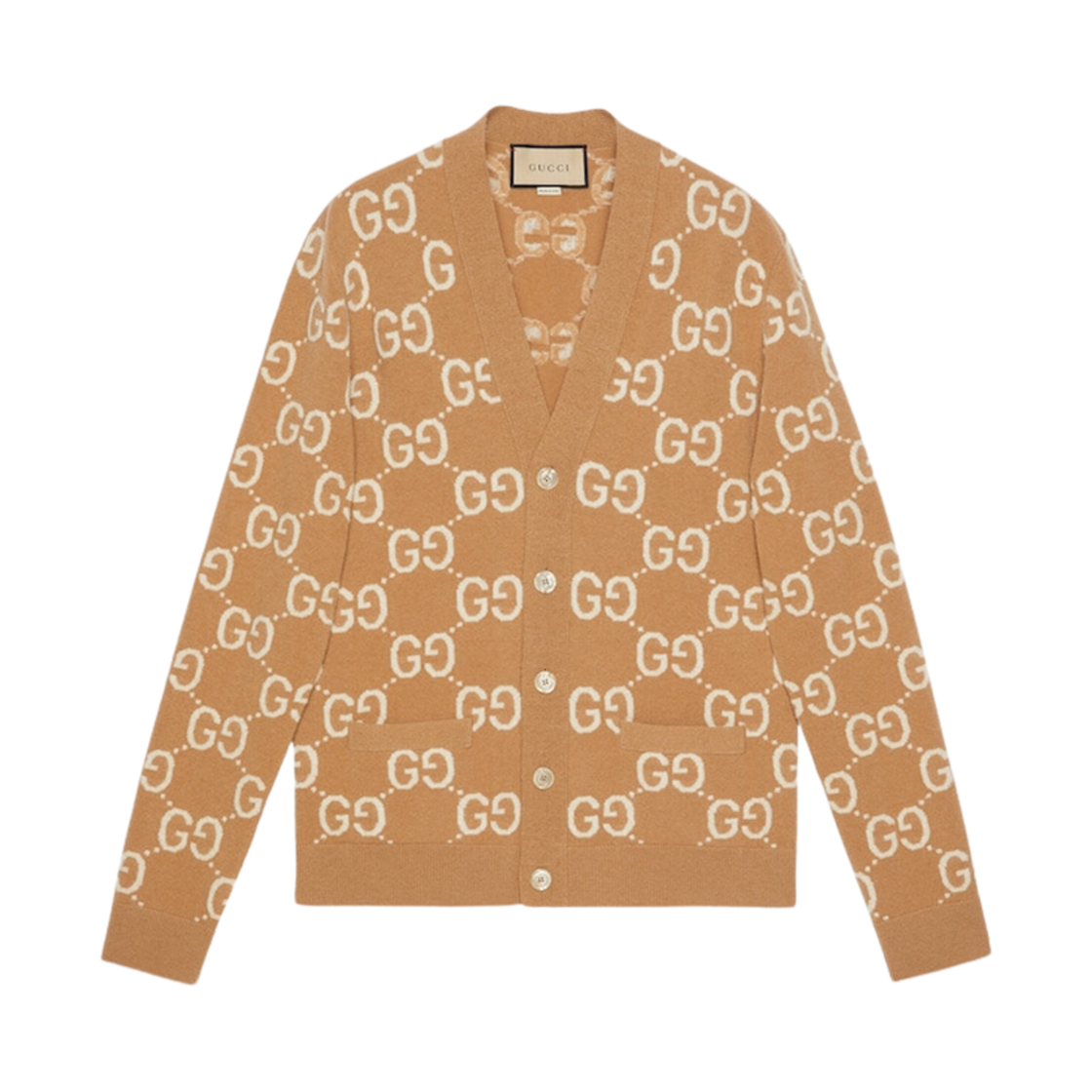 구찌 GG 울 자카드 가디건 카멜 아이보리