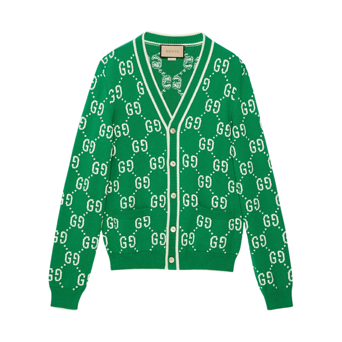구찌 GG 코튼 인타르시아 가디건 그린 아이보리