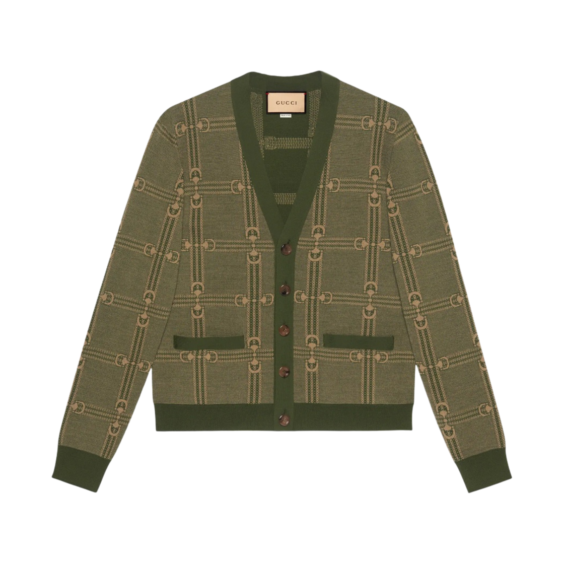구찌 홀스빗 자카드 니트 가디건 그린 카멜