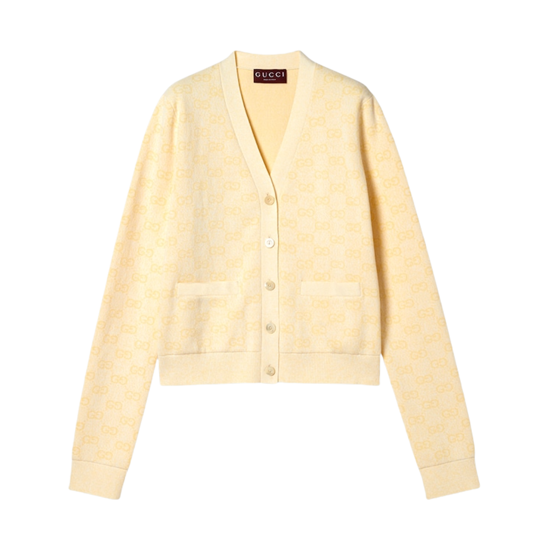 (W) 구찌 파인 코튼 GG 자카드 가디건 파스텔 옐로우 화이트