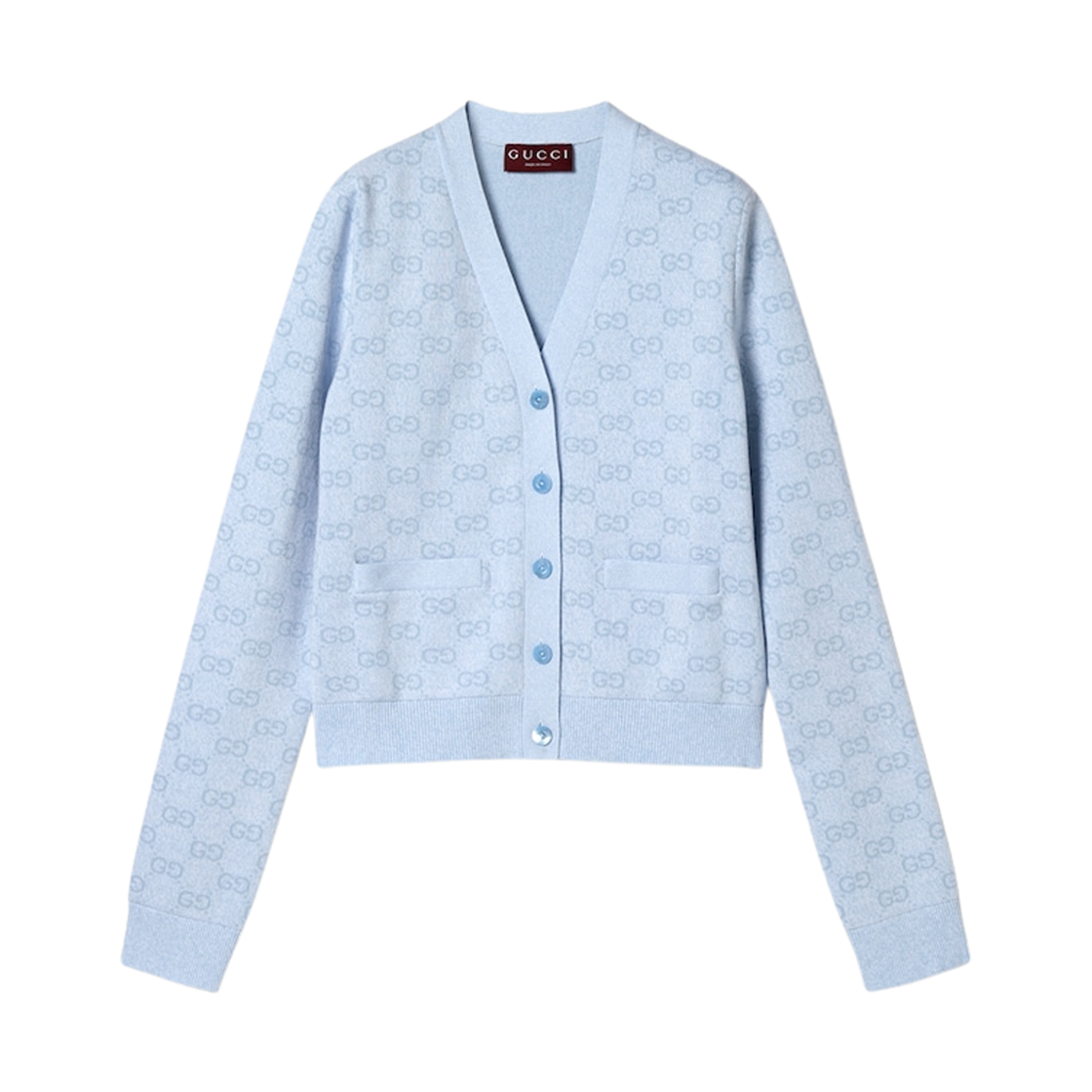 (W) 구찌 파인 코튼 GG 자카드 가디건 라이트 블루 화이트