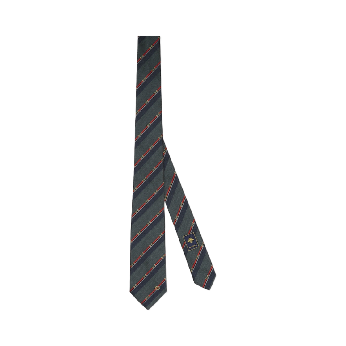 구찌 홀스빗 실크 자카드 타이 다크 그레이
