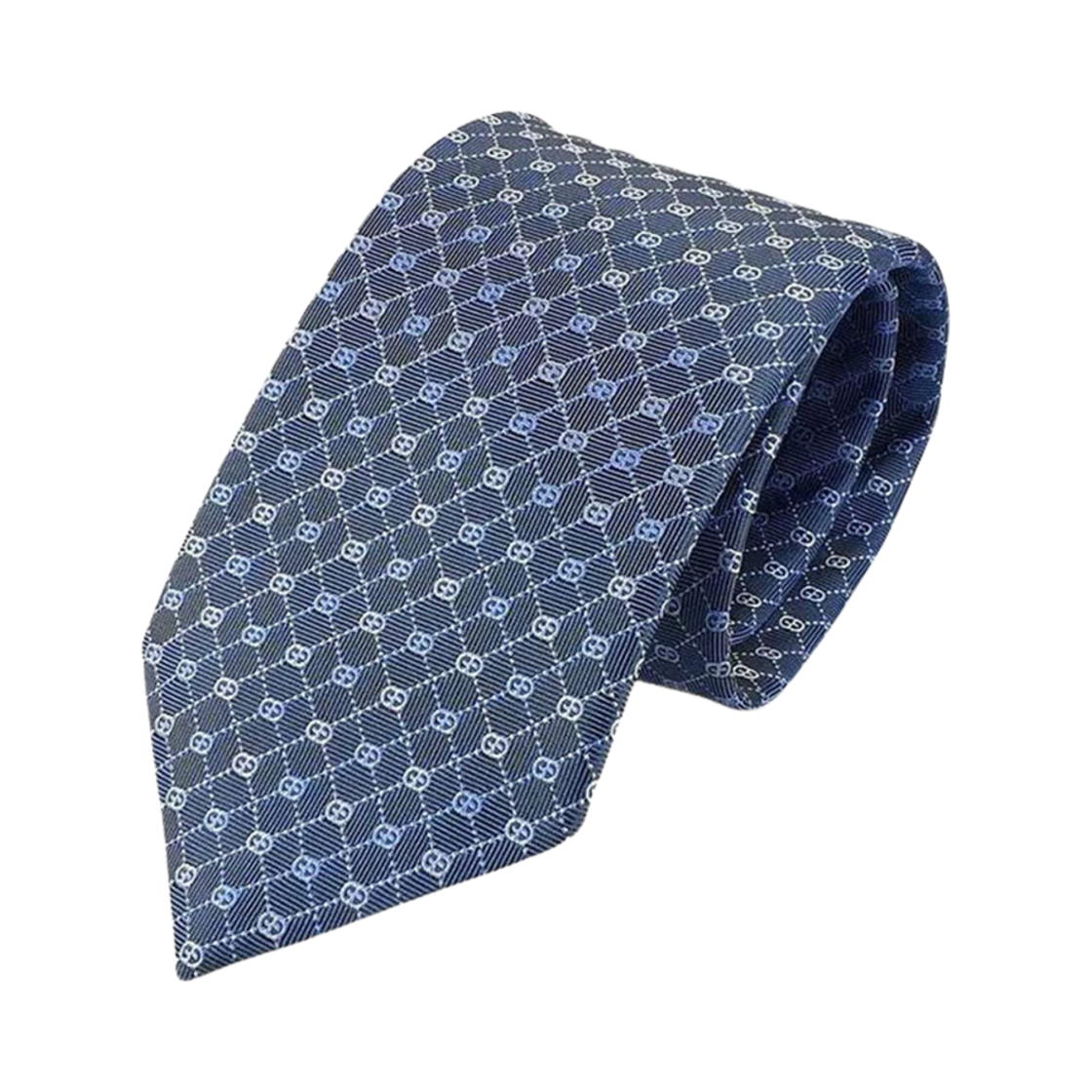 구찌 GG 패턴 실크 타이 네이비 블루