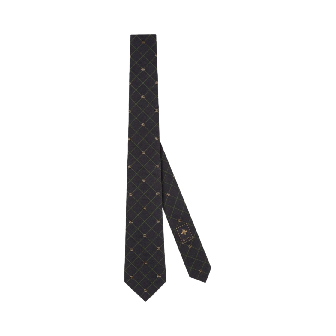 구찌 자수 실크 자카드 타이 다크 블루 그린