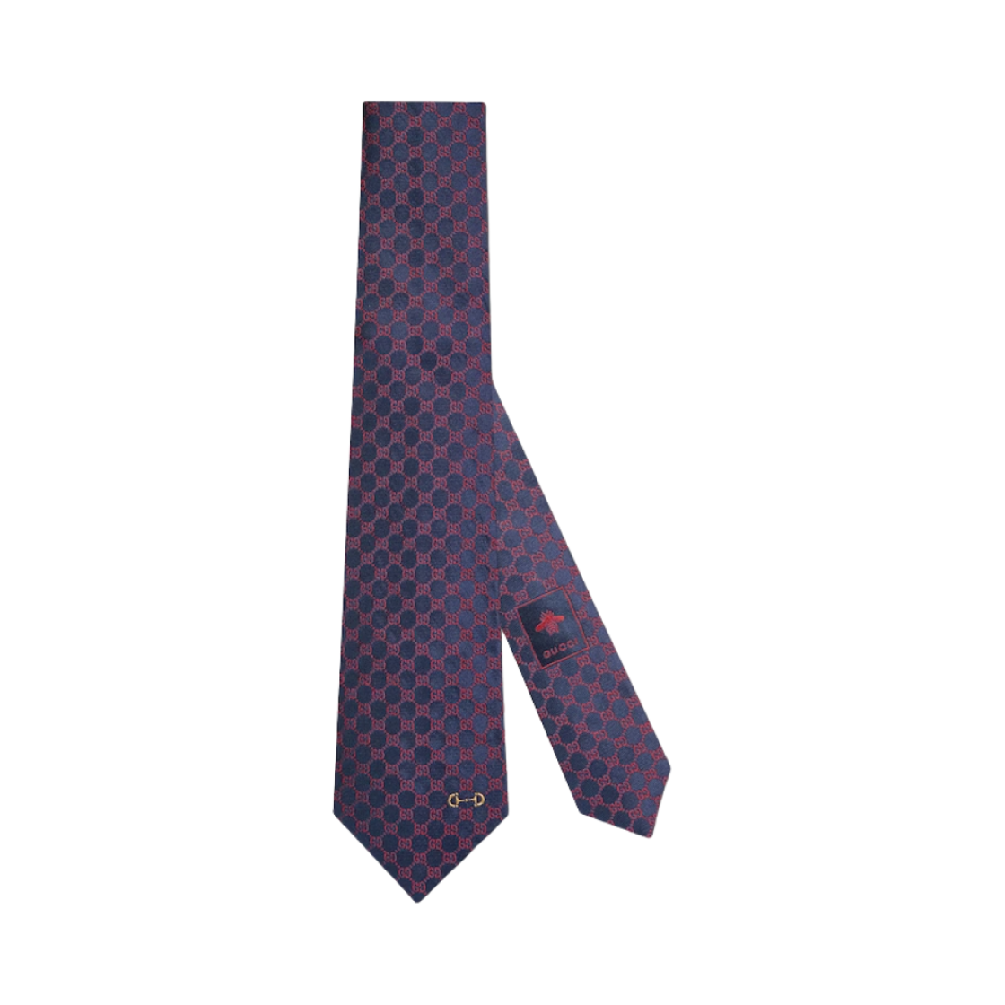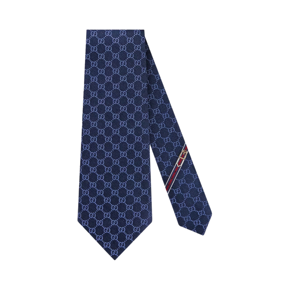 구찌 더블 G 홀스빗 자카드 실크 타이 미드나잇 블루
