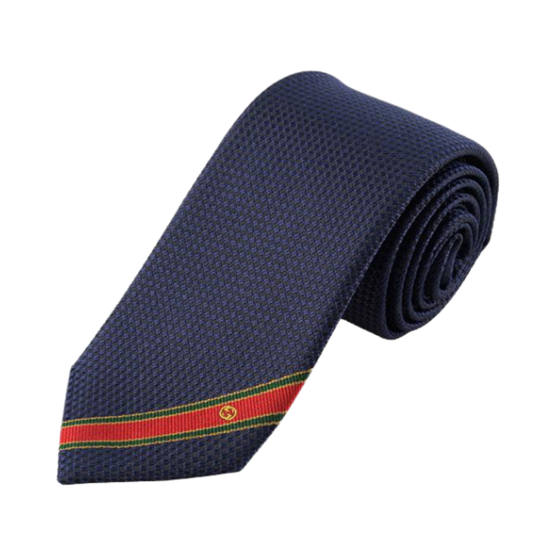구찌 라운드 인터로킹 G 로프 실크 타이 네이비 레드