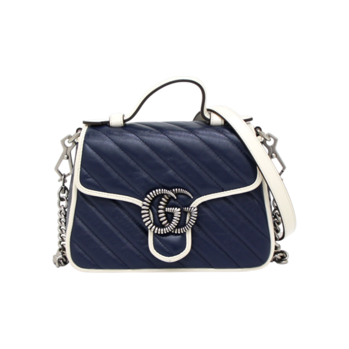 구찌 498100 GG 마몬트 마틀라세 탑핸들 토트 겸 웹스트랩 숄더백 aa21757