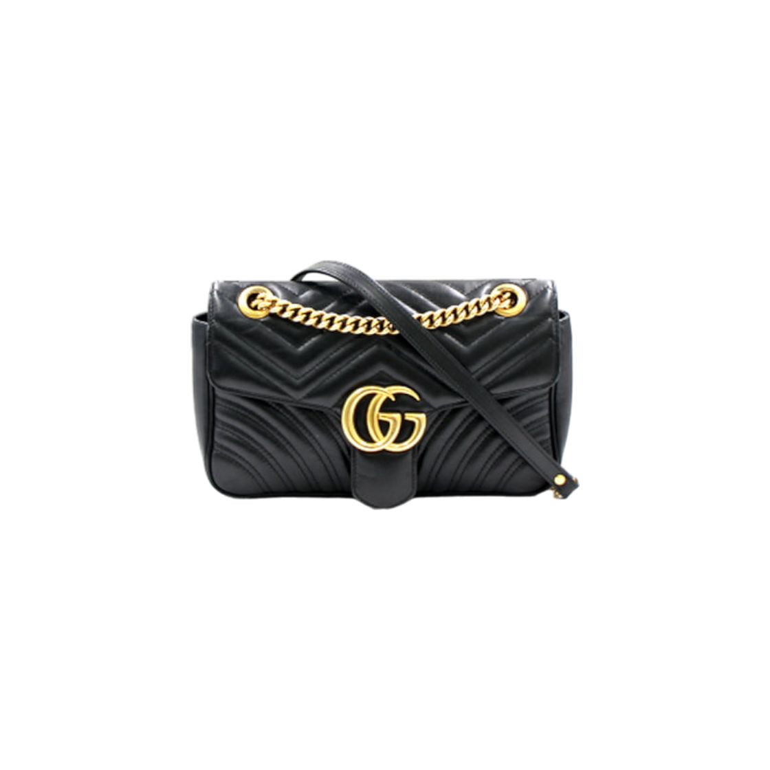 구찌 443497 GG 마몬트 블랙 마틀라세 쉐브론 금장체인 숄더백 aa38219