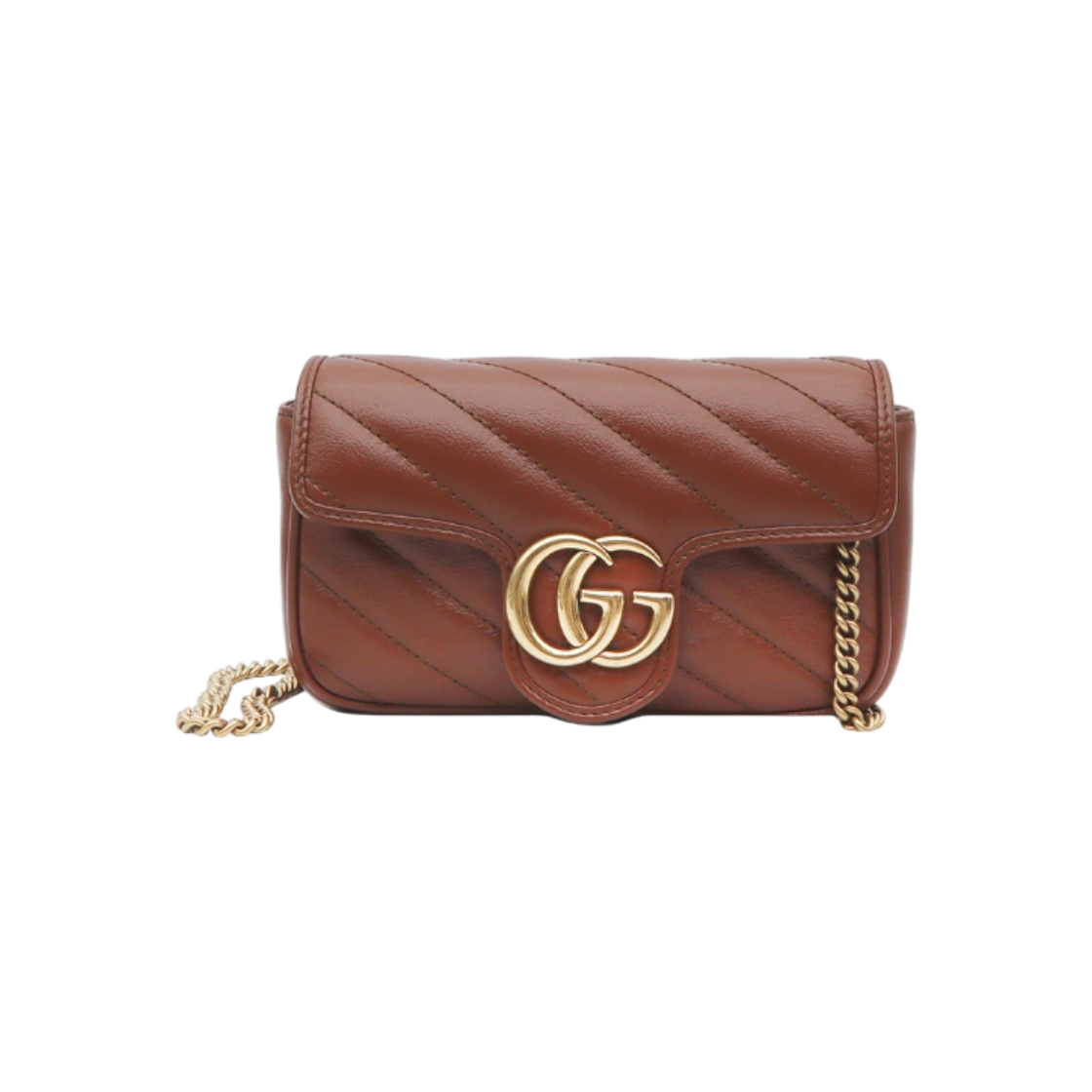 구찌 GG 마몬트 슈퍼 미니 쉐브론 마틀라세 체인 크로스백 브라운