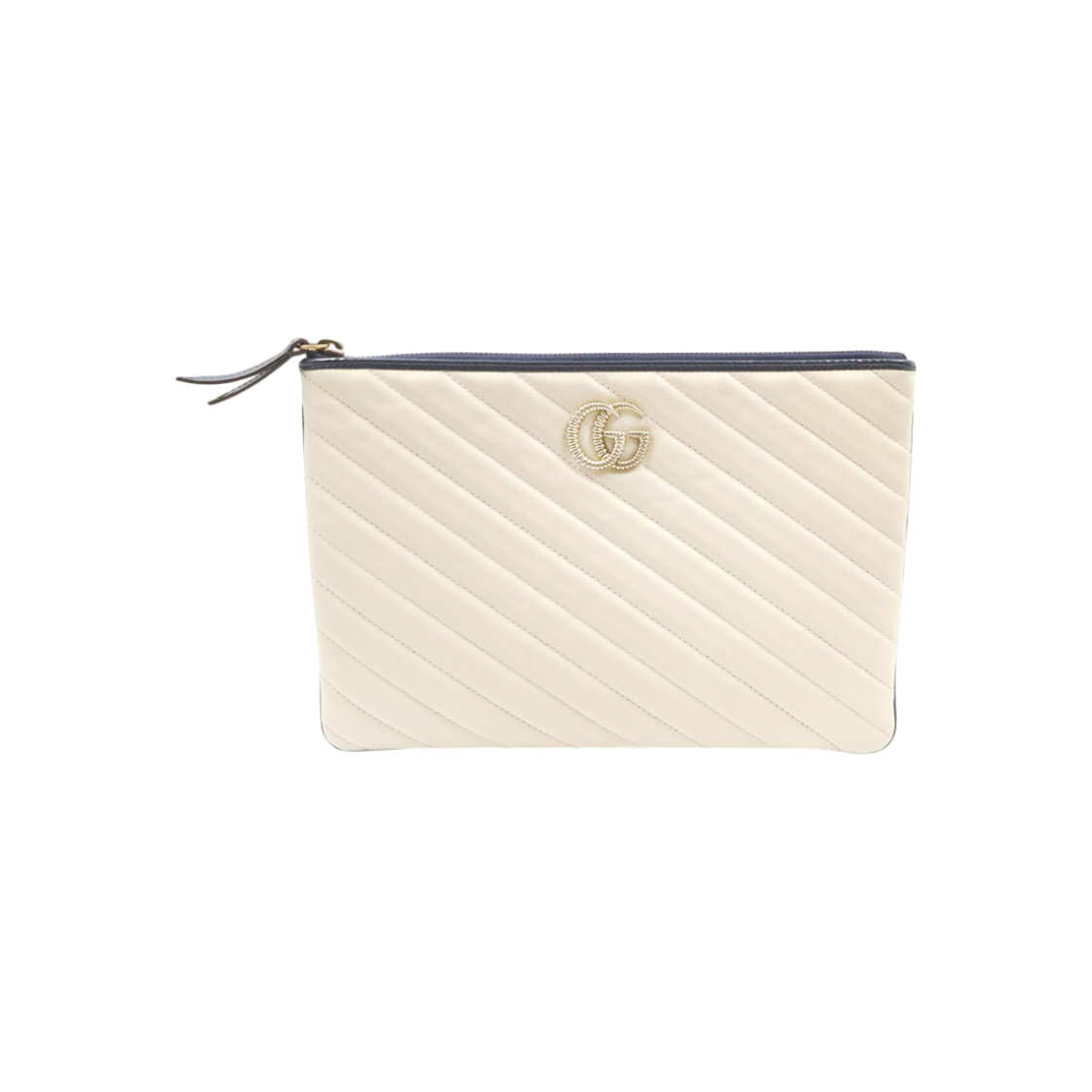 구찌 573814 GG 마몬트 퀄티드 레더 클러치 파우치 화이트