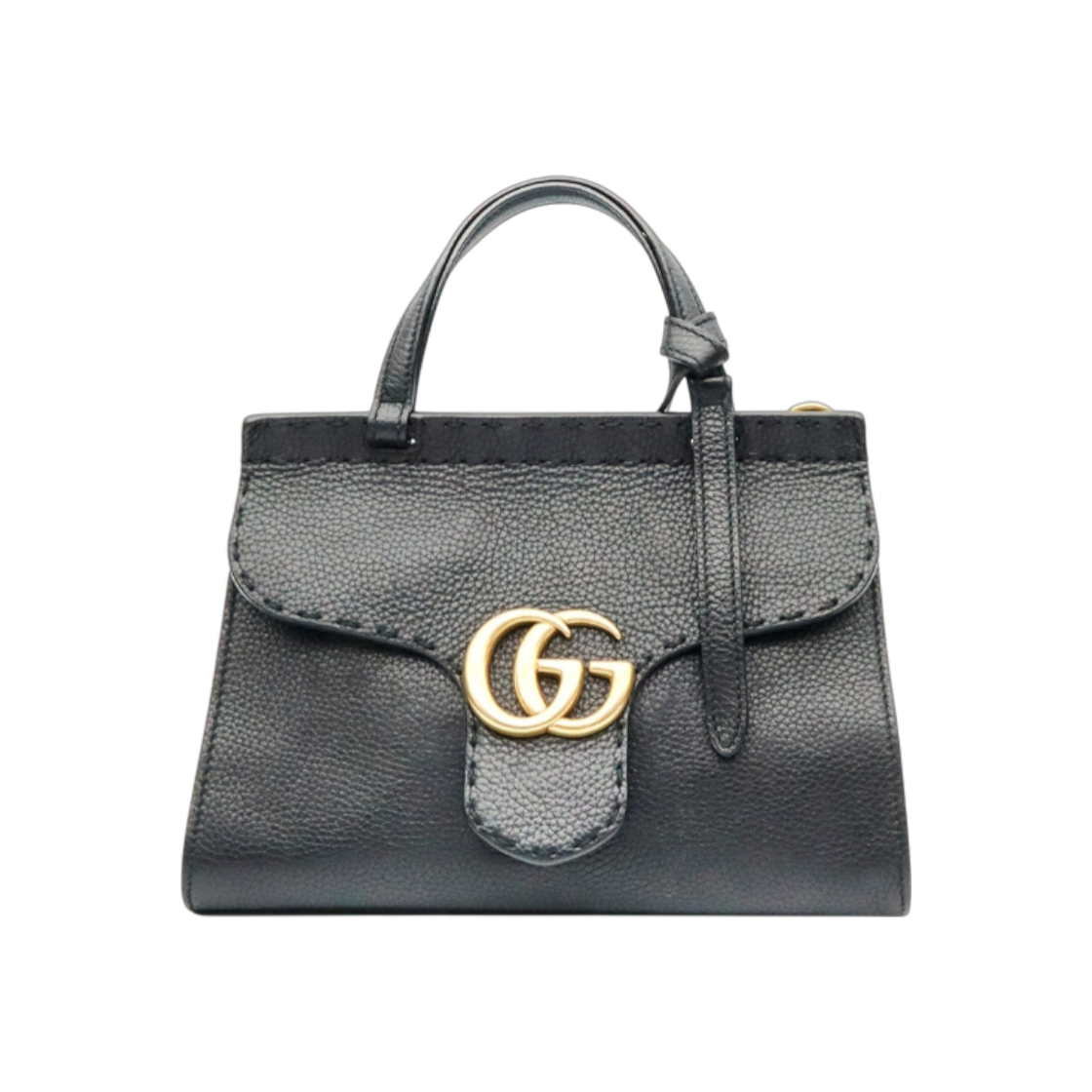 구찌 GG 마몬트 블랙 레더 금장 미니 탑핸들백