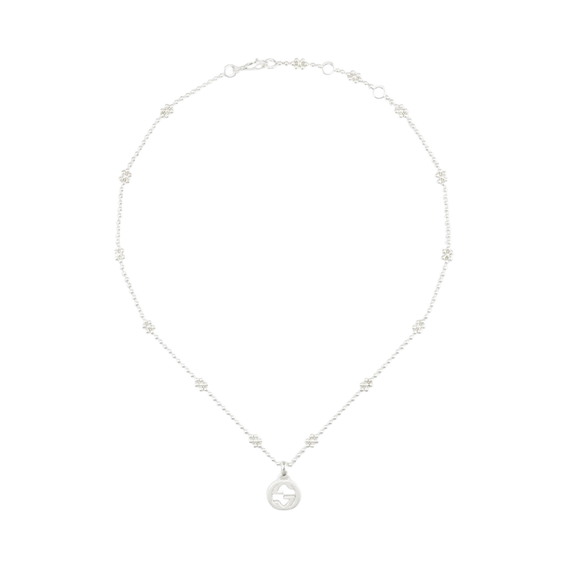구찌 인터로킹 G 펜던트 플라워 모티프 체인 네클리스 실버