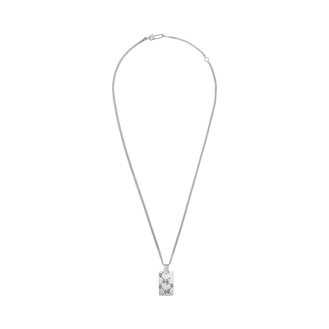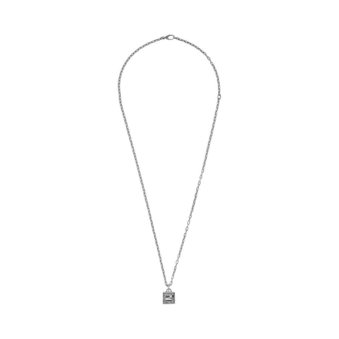 구찌 스퀘어 플레이트 펜던트 네클리스 실버