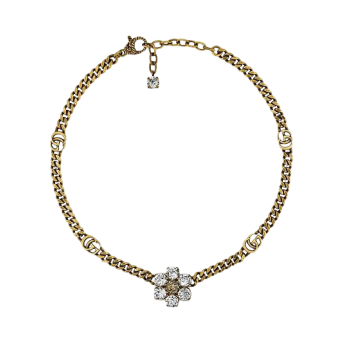 (W) 구찌 크리스탈 더블 G 네클리스 화이트 옐로우 골드