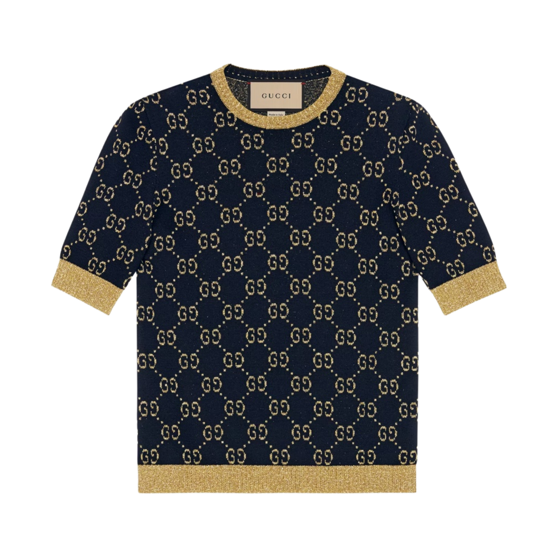 구찌 실크 코튼 티셔츠 인타르시아 네이비 실크 코튼 니트
