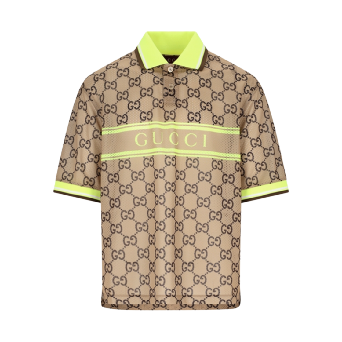 구찌 폴리에스터 메쉬 GG 폴로 티셔츠 베이지 에보니