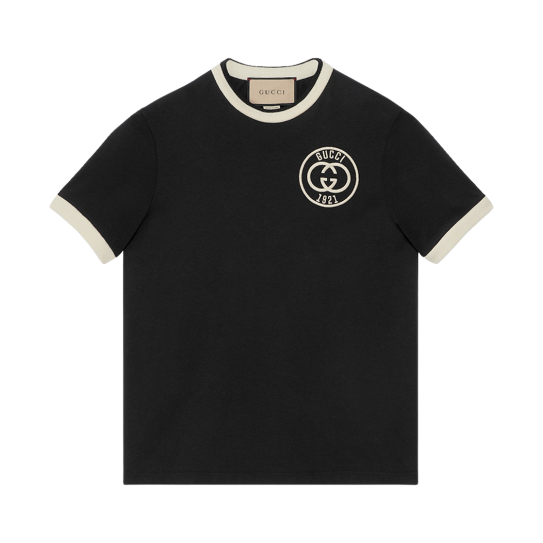 (W) 구찌 코튼 저지 티셔츠 자수 블랙