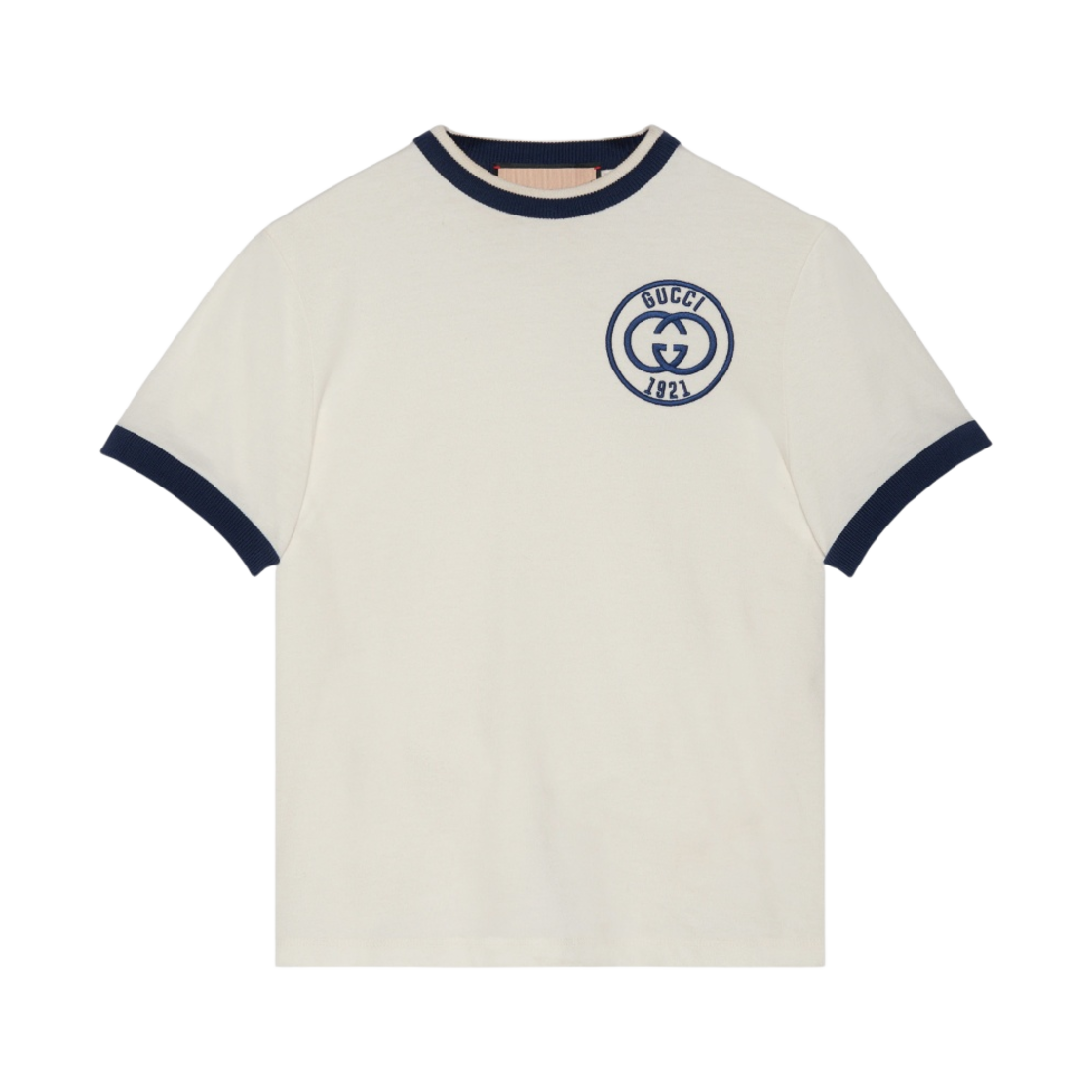 (W)구찌 패치 코튼 저지 티셔츠 오프 화이트