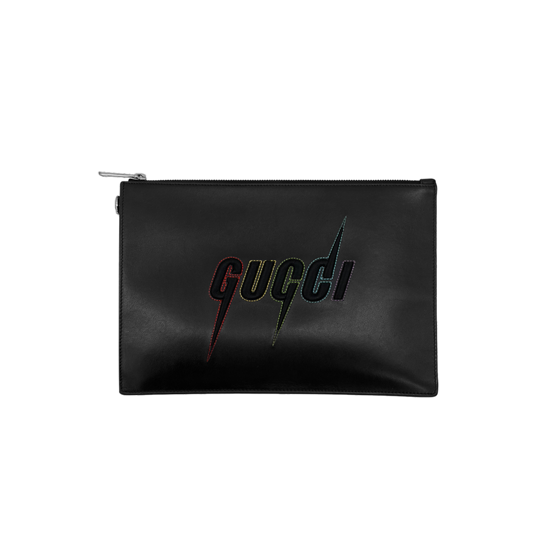 구찌 님성 블레이드 자수 로고 클러치 백 파우치 블랙