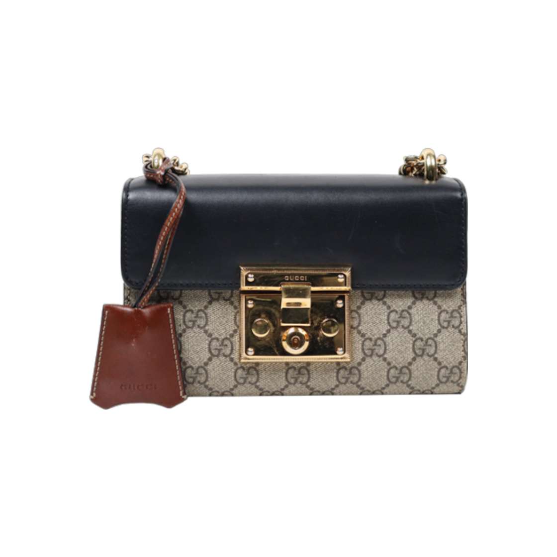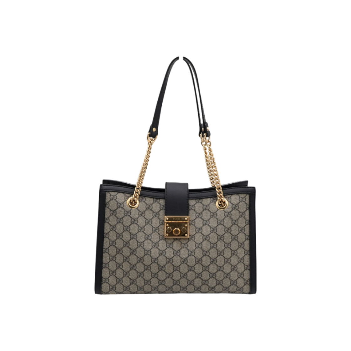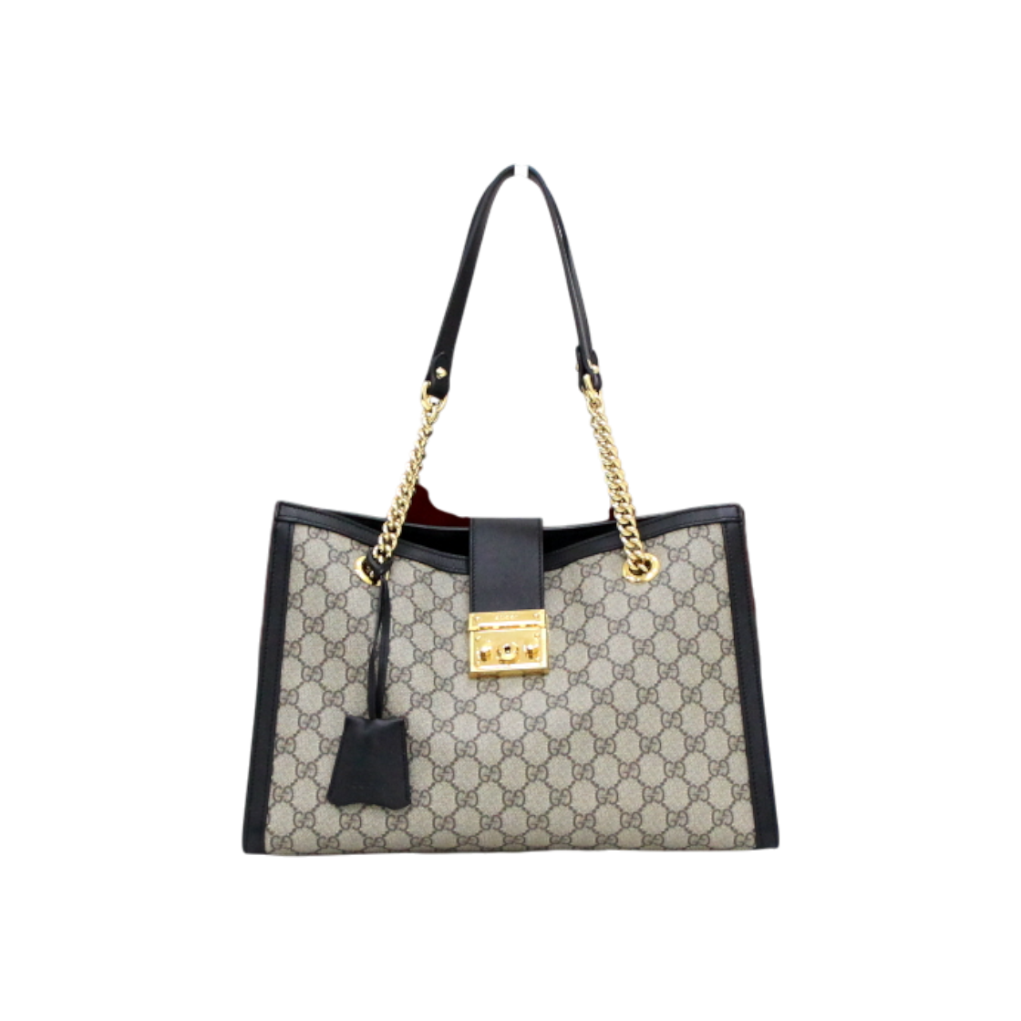 구찌 479197 GG 수프림 블랙 트리밍 패들락 미디엄 금장체인 숄더백 aa58820