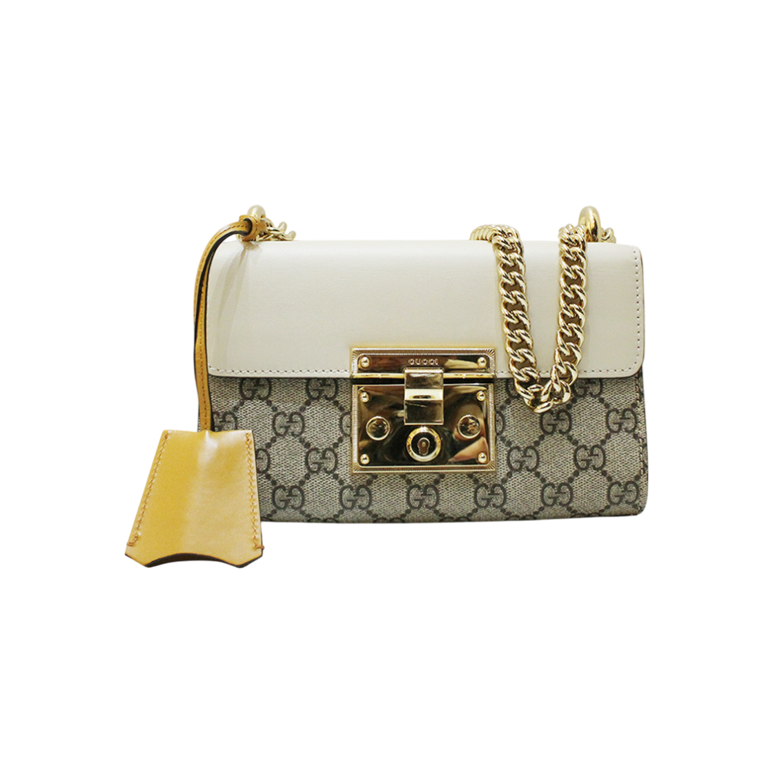 구찌 수프림 캔버스 화이트 레더 패들락 미디엄 GG 숄더백