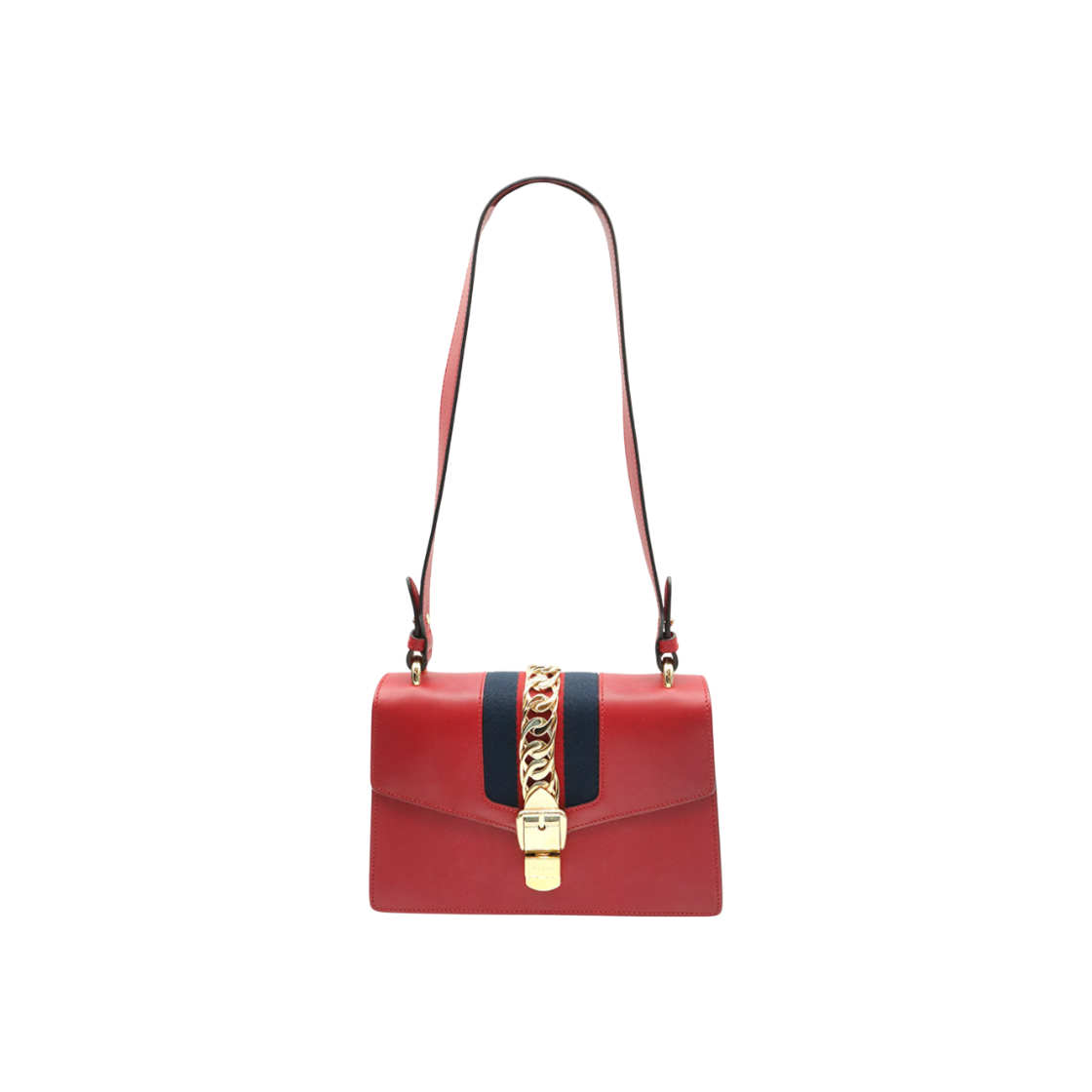 구찌 421882 레드 레더 웹 리본 실비 스몰 투웨이 백