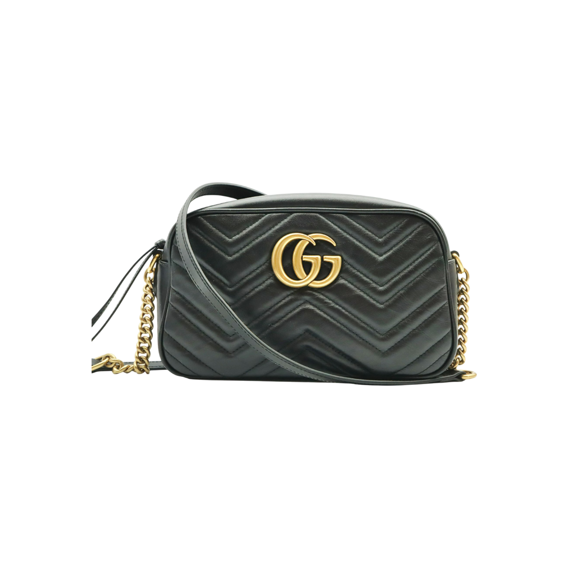 구찌 447632 블랙 마틀라세 쉐브론 금장 GG 마몽 스몰 체인 숄더백