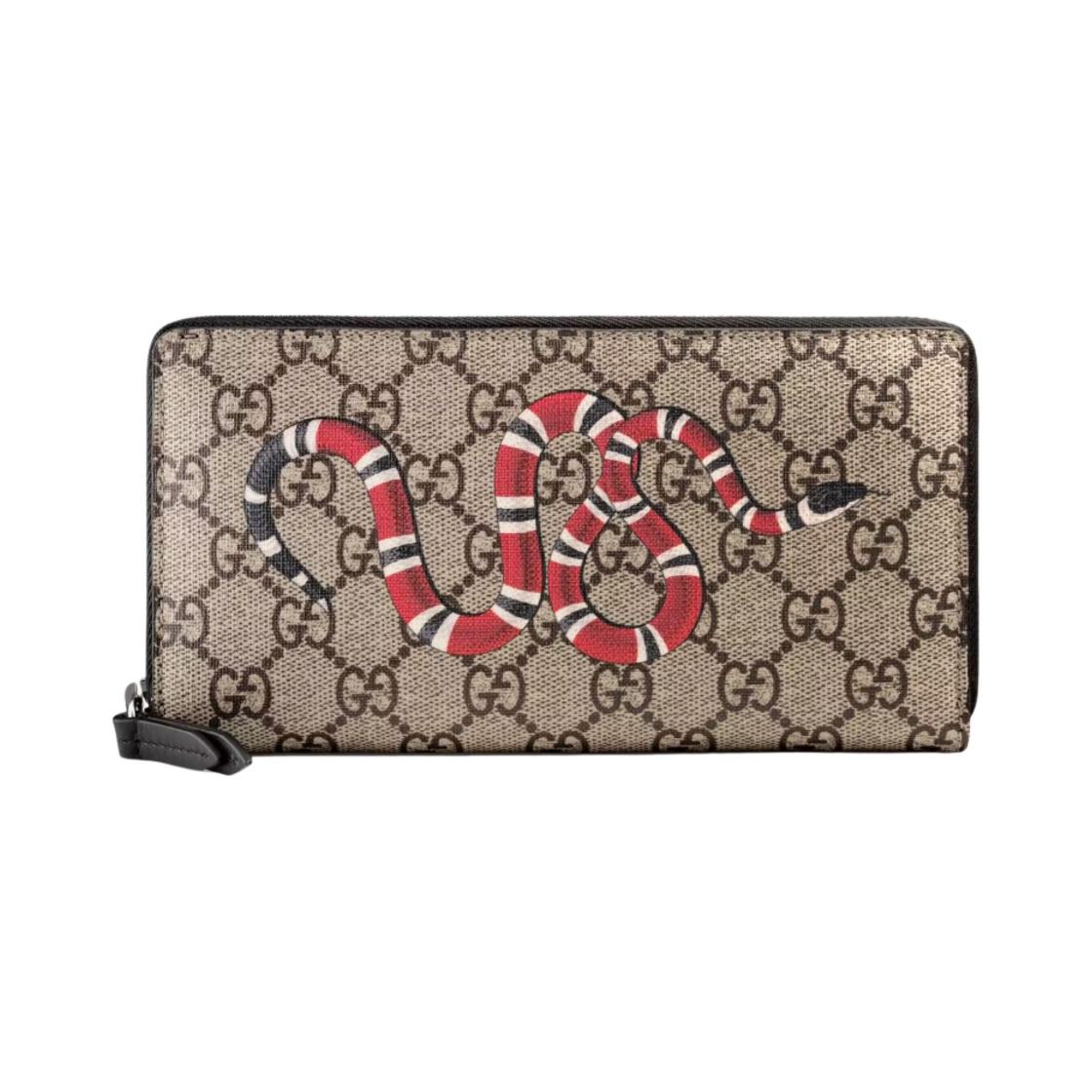 구찌 킹스네이크 프린트 GG 슈프림 지퍼 달린 지갑 베이지 에보니