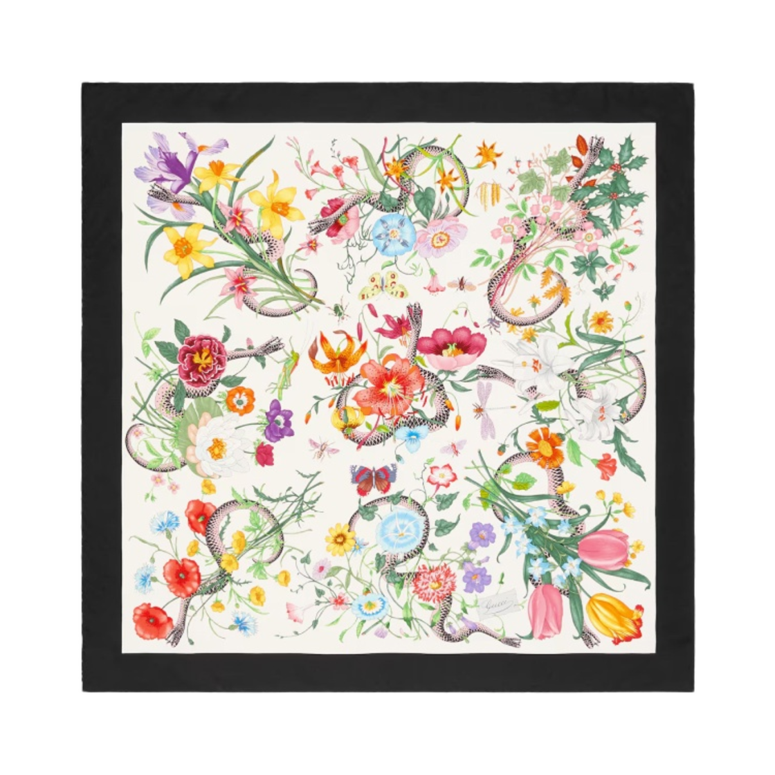 구찌 플로라 스네이크 프린트 실크 스카프 아이보리 블랙