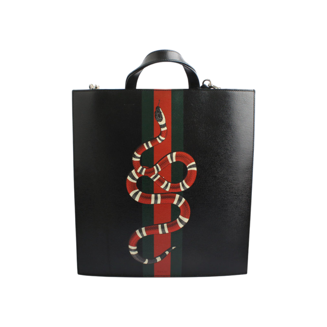 구찌 블랙 레더 킹 스네이크 삼선 토트백 겸 숄더백 (431336)