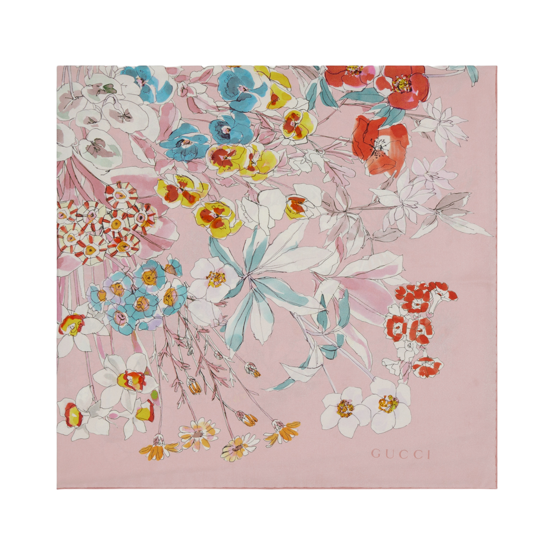 (W) 구찌 플라워 프린트 실크 스카프 핑크