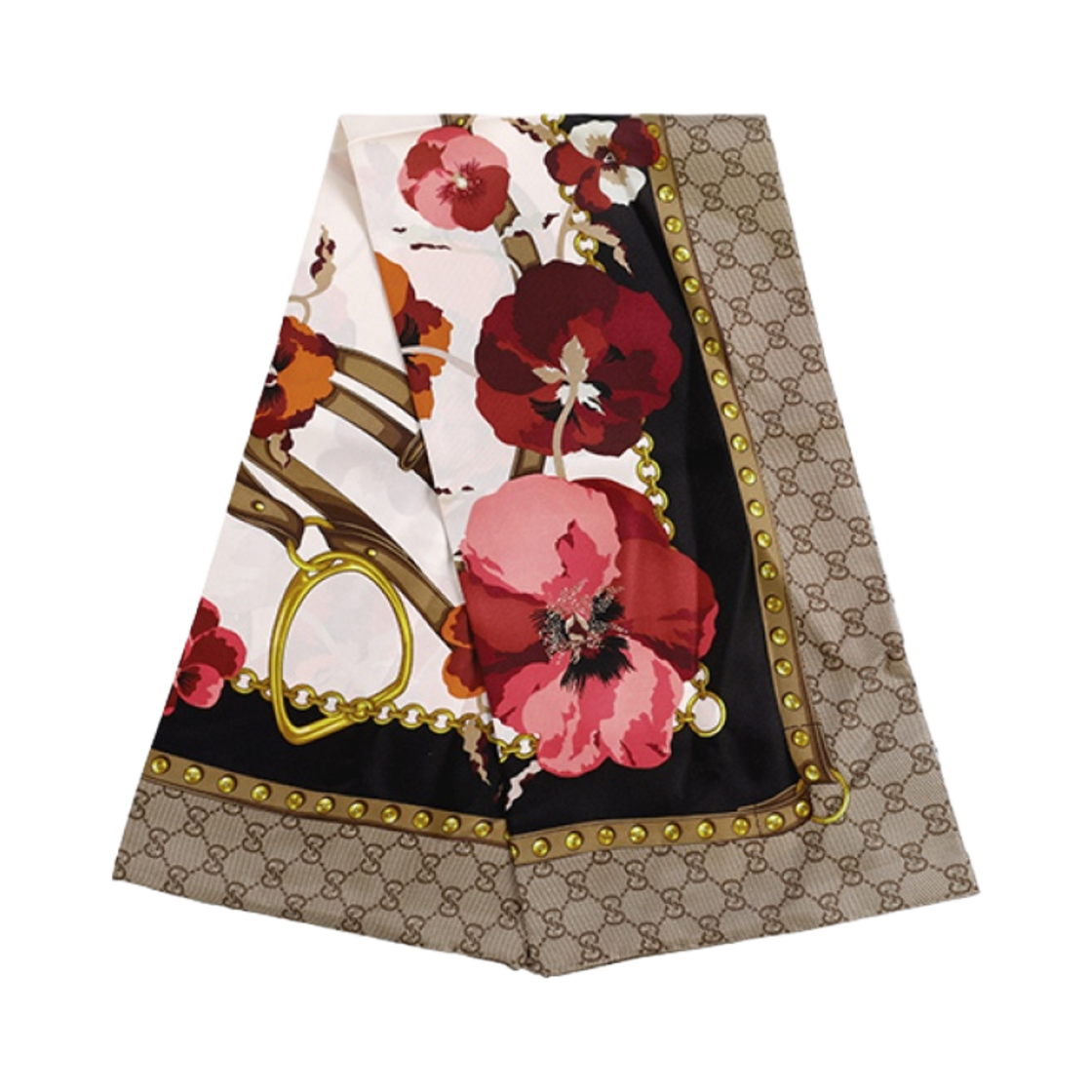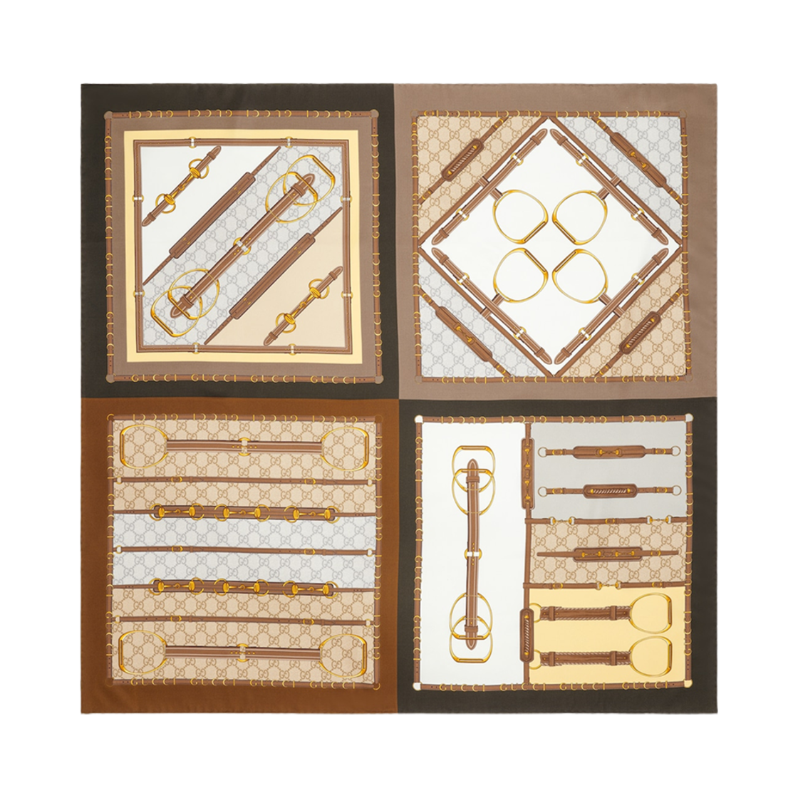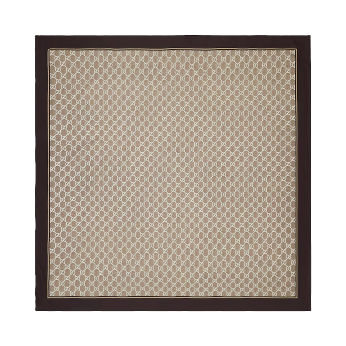 (W) 구찌 프린티드 실크 까레 다크 브라운 베이지