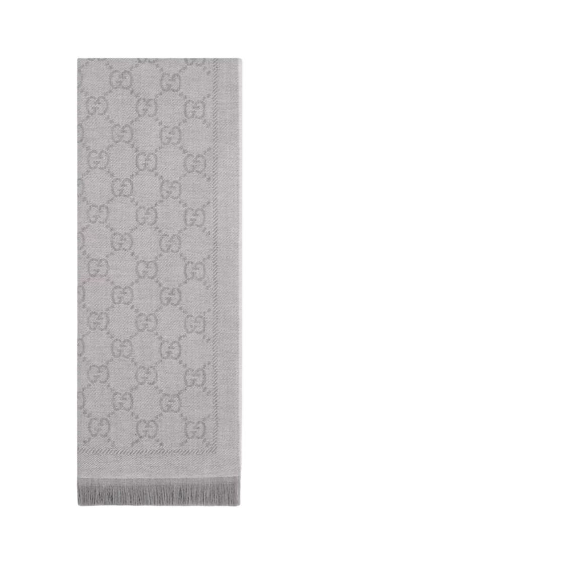 (W) 구찌 GG 울 실크 자카드 스카프 그레이