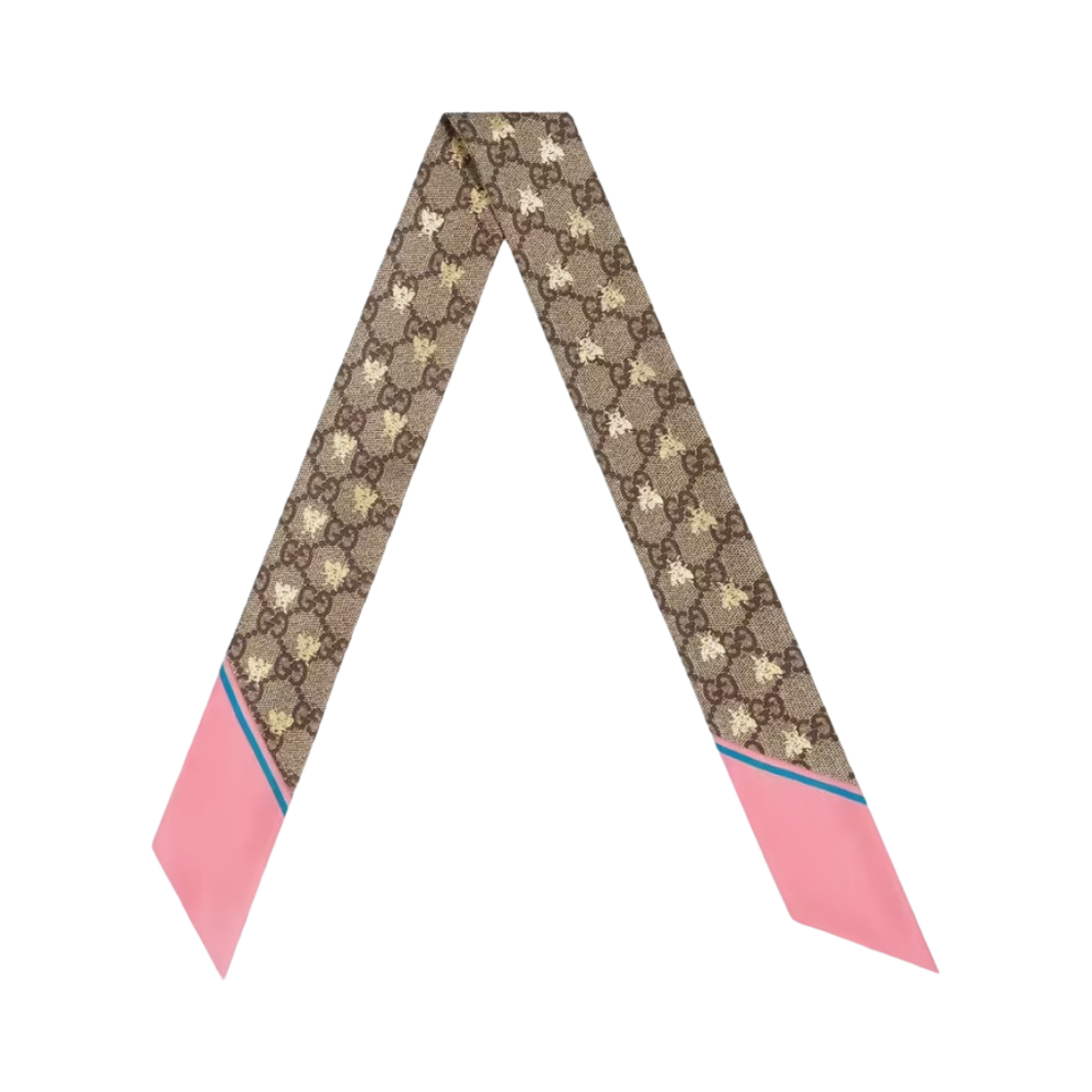 (W) 구찌 베스티즈 프린티드 실크 트윌 리본 라이트 핑크