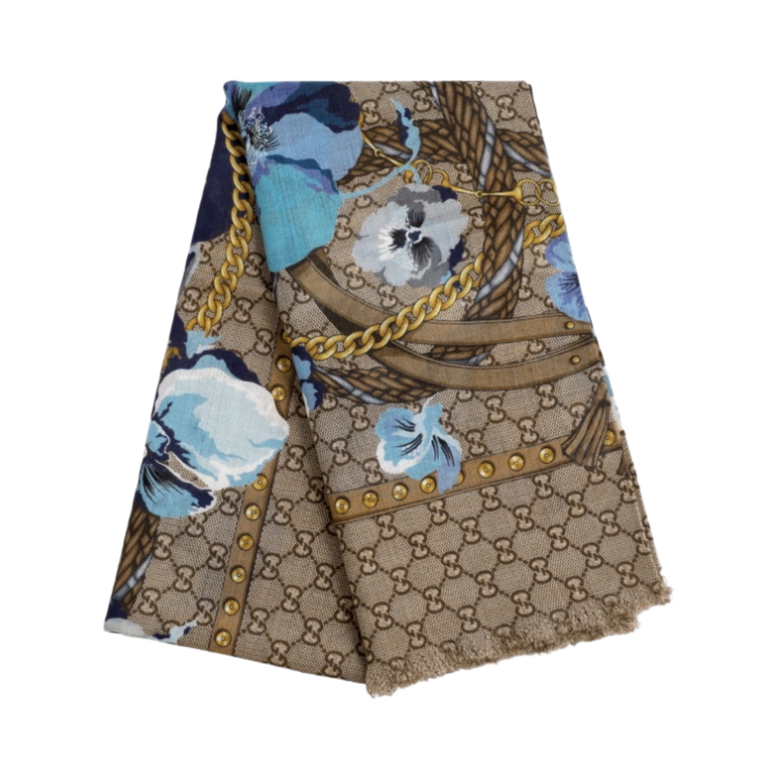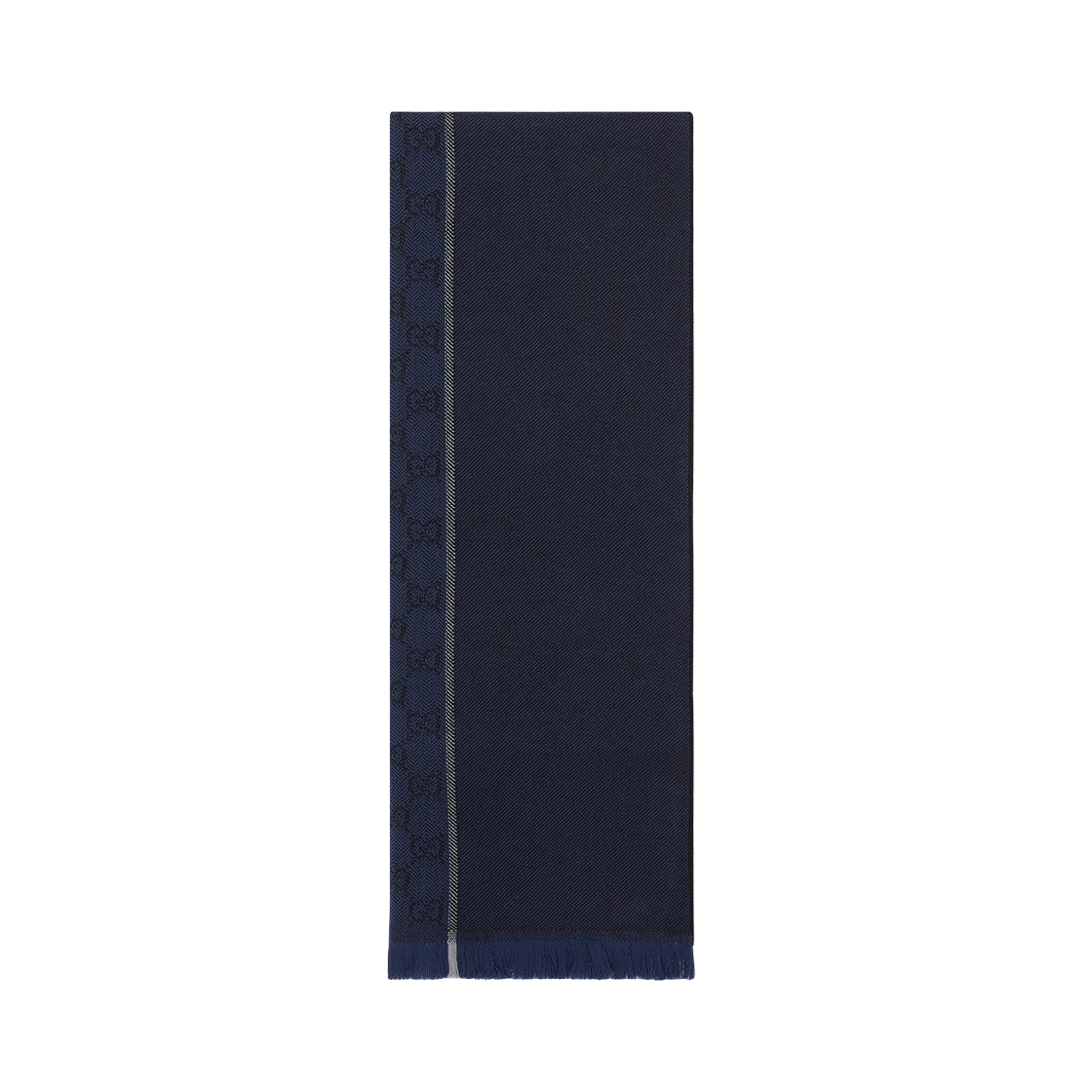 구찌 GG 울 자카드 스카프 네이비 라이트 그레이