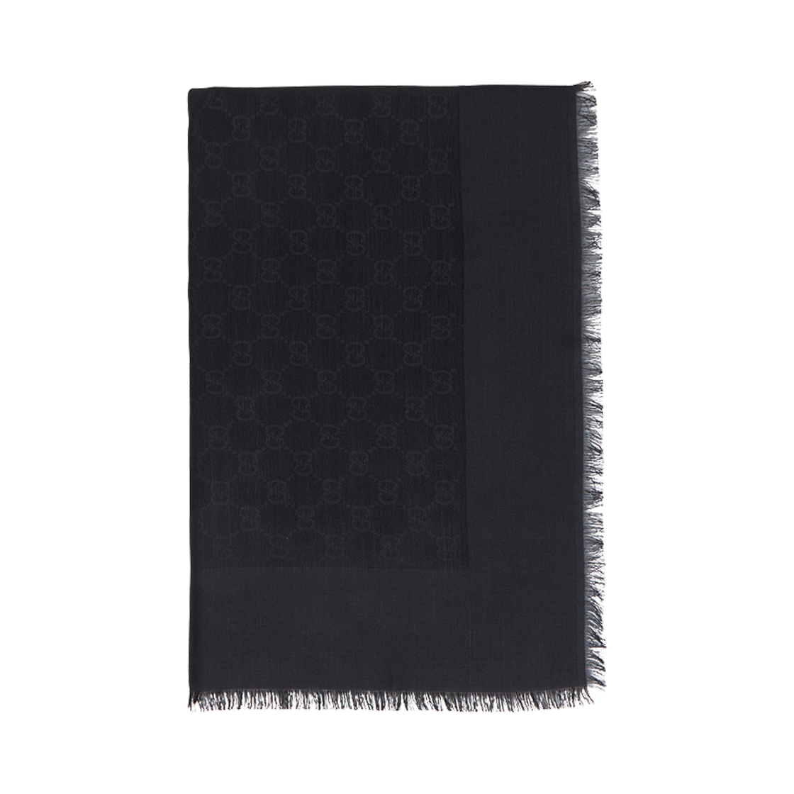 (W) 구찌 GG 울 실크 자카드 스카프 블랙