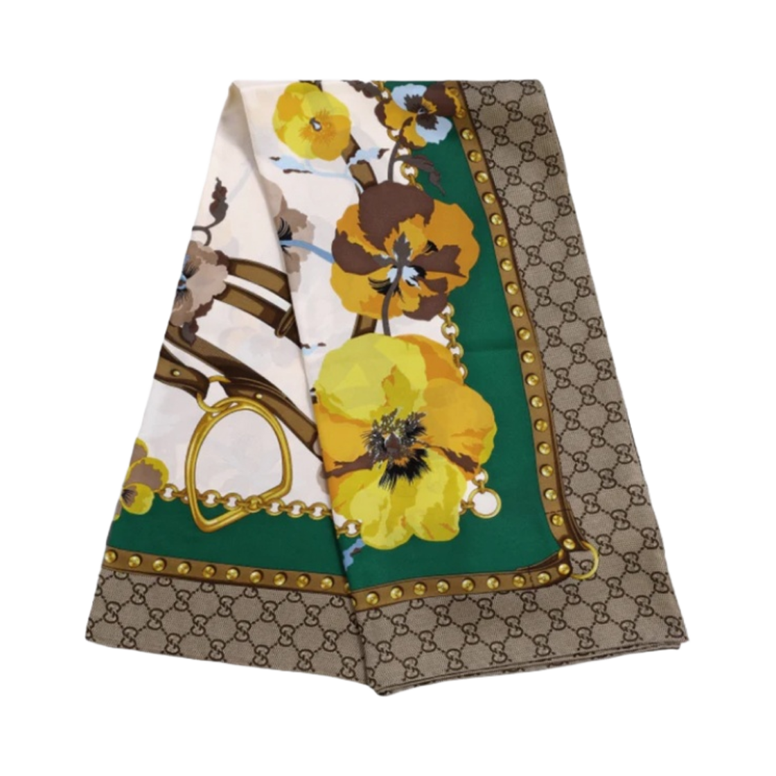 (W) 구찌 플라워 프린트 실크 스카프 그린
