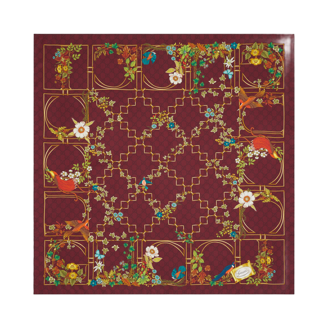 (W) 구찌 프린티드 실크 트윌 까레 보르도