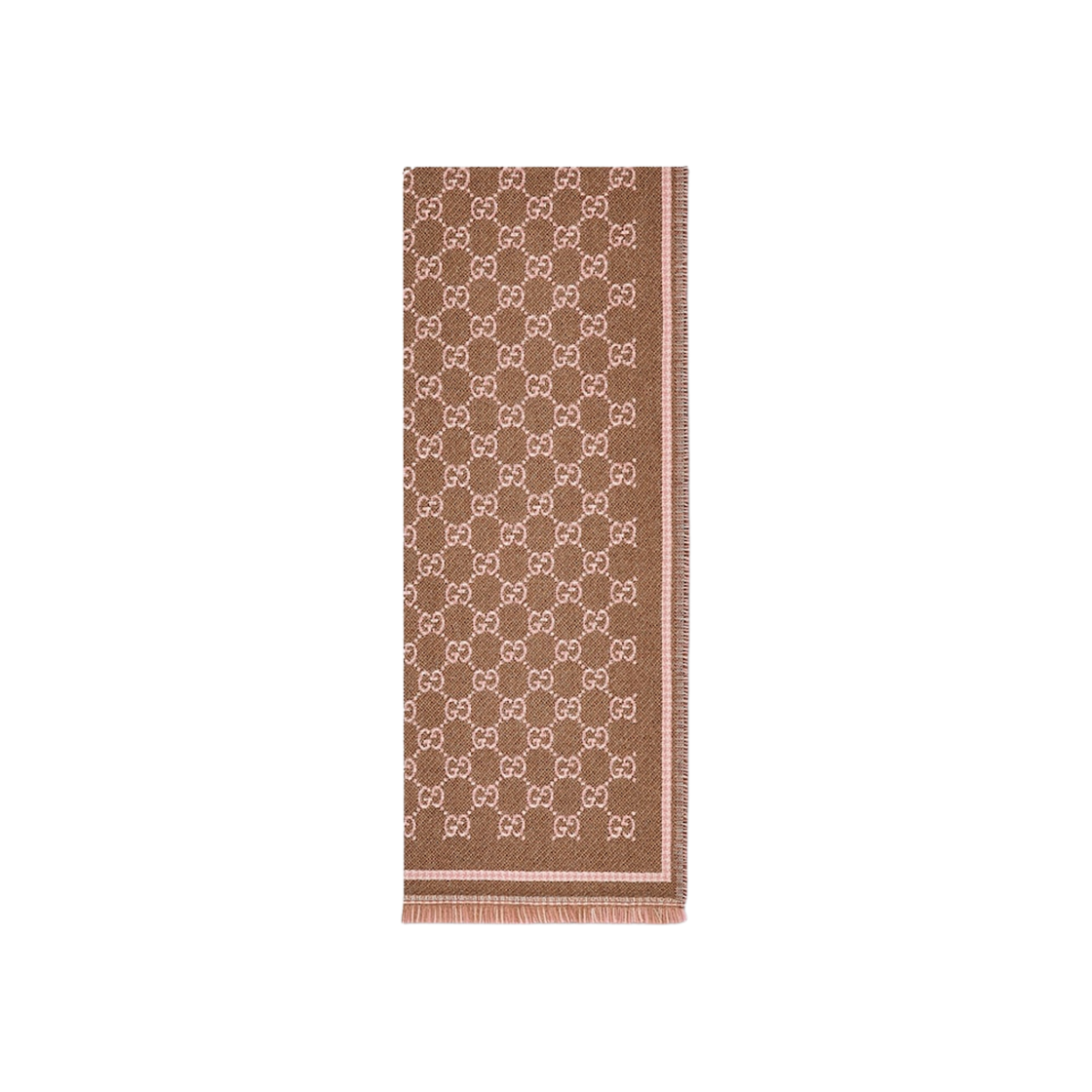 (W) 구찌 GG 자카드 니트 스카프 라이트 브라운
