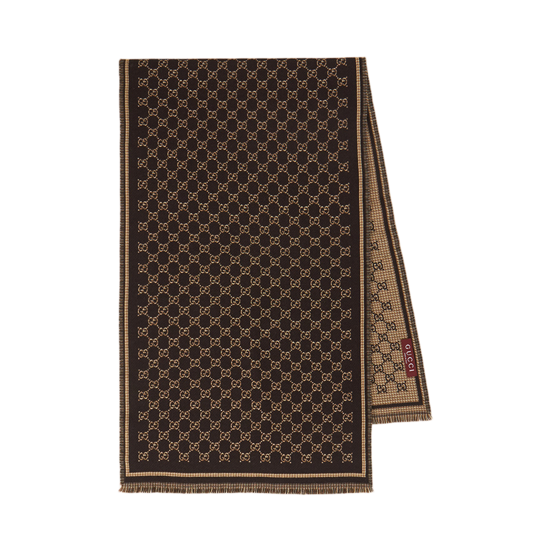 구찌 GG 울 자카드 스카프 다크 브라운 베이지