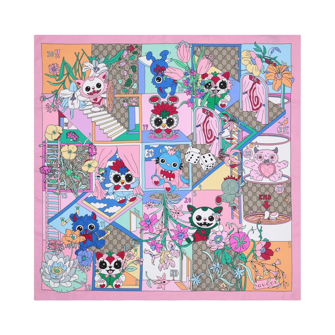 (W) 구찌 프린티드 실크 까레 아이보리 멀티컬러