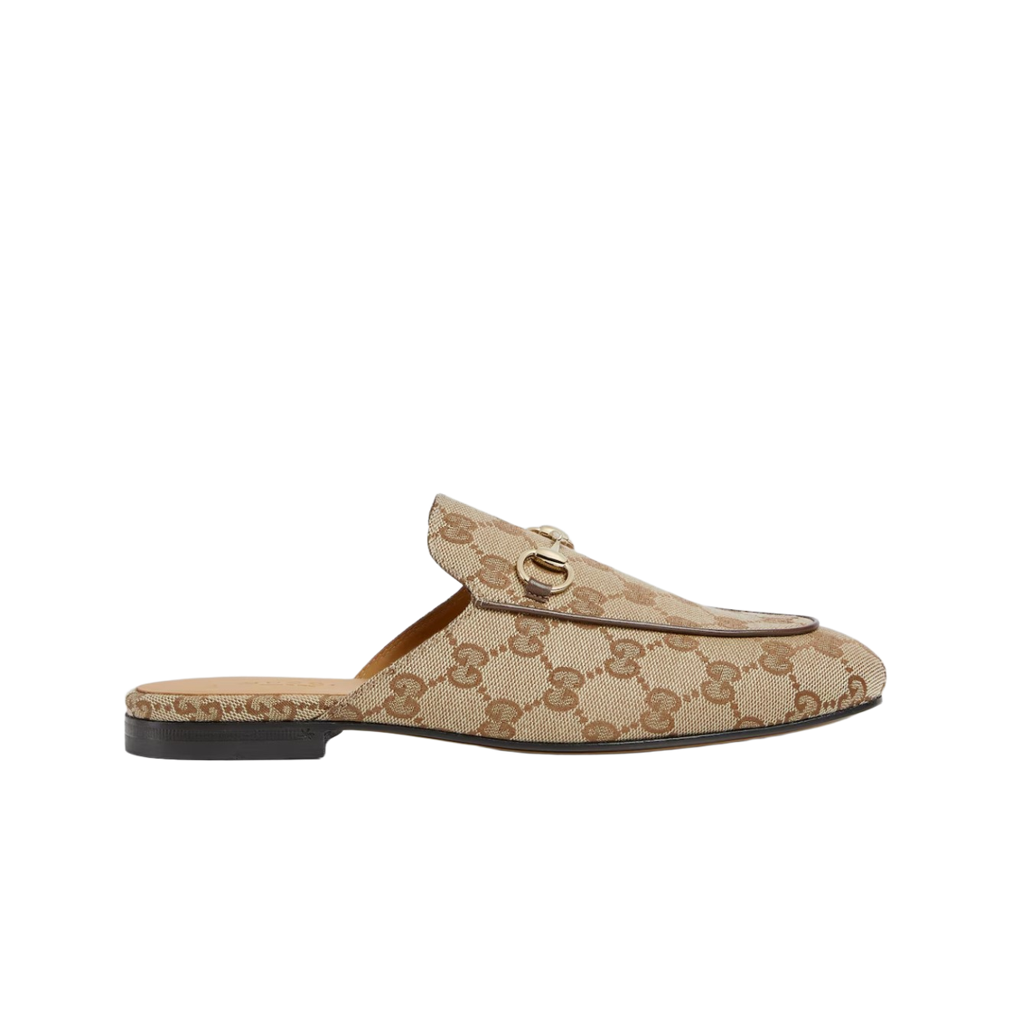 (W) 구찌 프린스타운 슬리퍼 베이지 에보니 오리지널 GG 캔버스