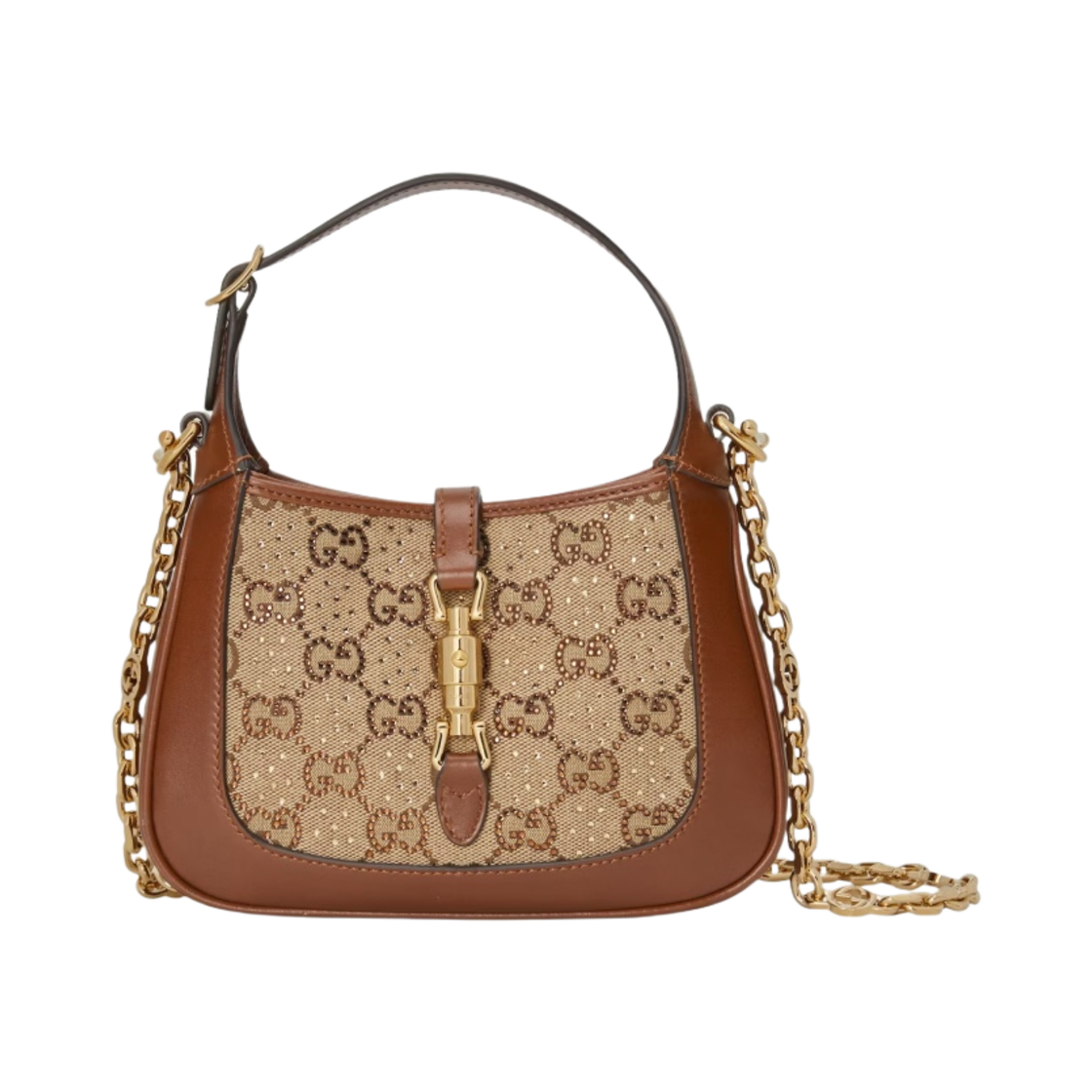 구찌 재키 1961 미니 GG 숄더백 카멜 에보니 캔버스